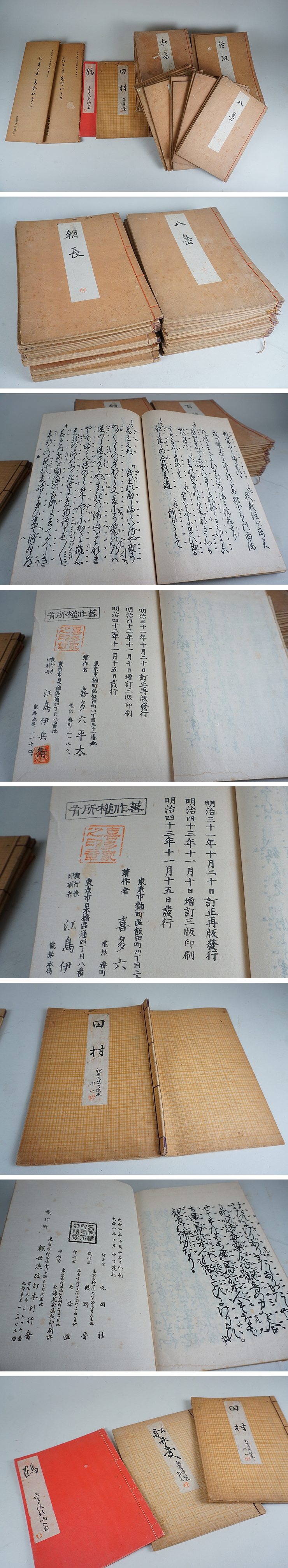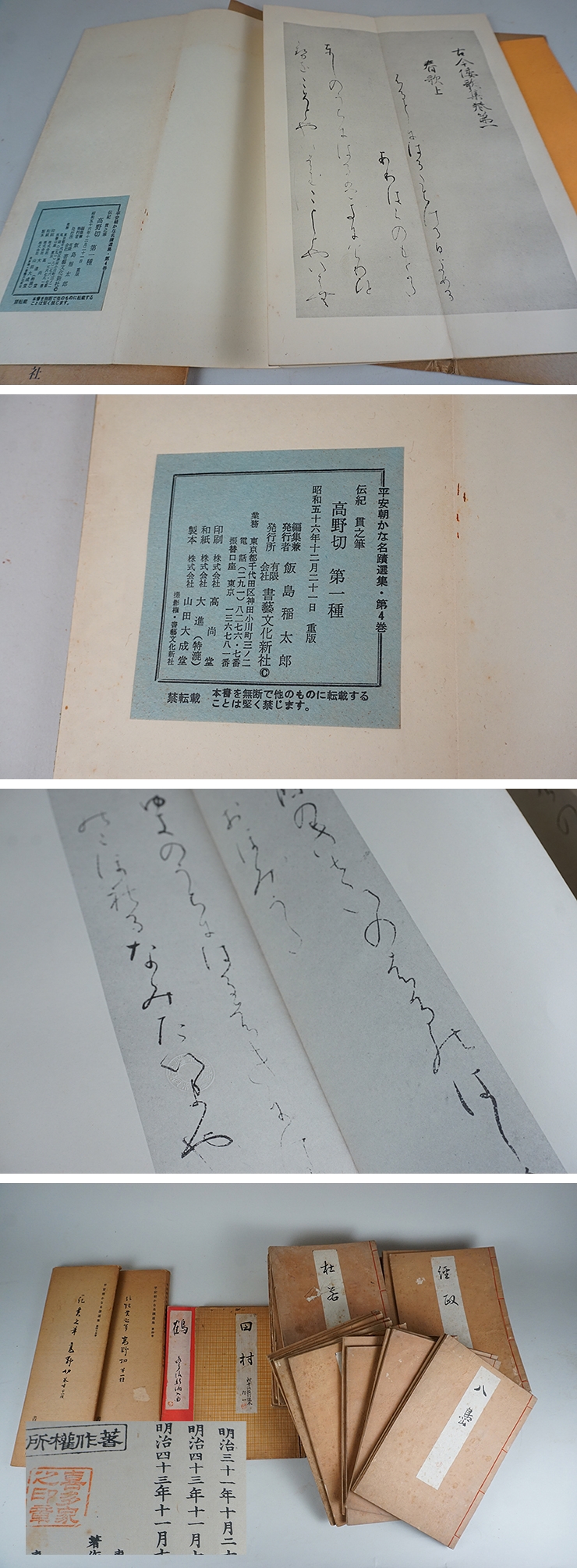 | 商品説明 | 舞台芸術能の謡本のようです。 明治時代、大正、昭和時代の物と古本になります。 厚手4冊、薄手25冊は同時発行。 2冊は大正4年1冊は昭和34年、高野切2冊は昭和56年発行です。 資料にいかがでしょうか。宜しくお願いします。 | |