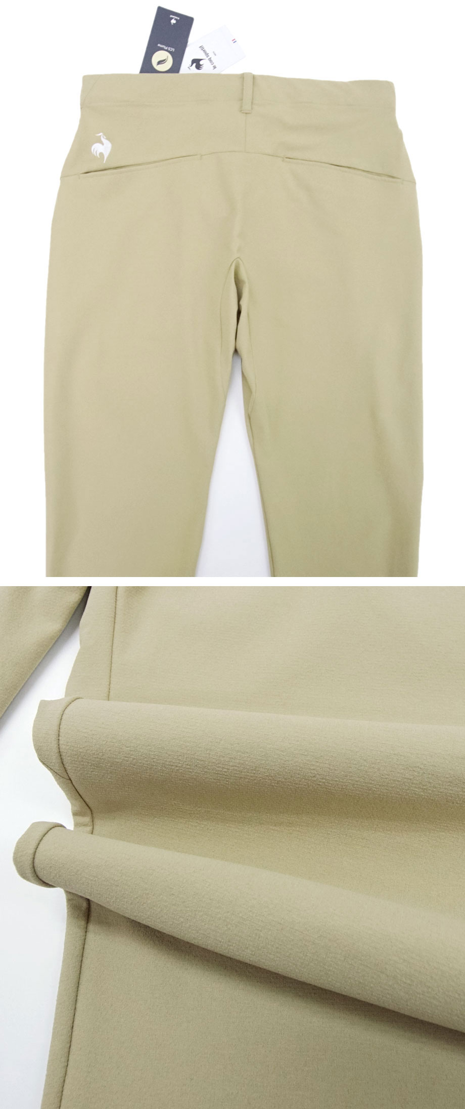 ●シンプルなデザインでシーンを選ばずご活用いただけるのが、おすすめのポイント。ヒップポケット上のルコックのロゴマーク刺繍も主張しすぎず、さりげないアクセントに。生地はきめ細やかで上品なツヤがあり、高級感が漂います。ゴルフにお選びになる方が多い品ですが、スポーツ等、各種のアクティブなシーンからカジュアルなスタイル、ビジネスカジュアル等…シーンを選ばず、快適な着こなしが楽しめます。