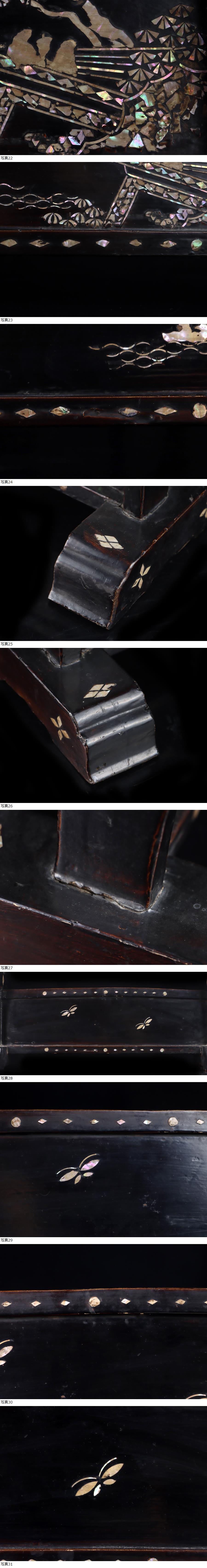 サイズ(約) 高さ 38㎝/横幅 48㎝/奥行 17㎝/重量 860g 付属品 - 収集家放出品 時代古作品 本物保証 時代武具 螺鈿細工 黒漆青貝 山水人物図 三本掛用 刀掛け 武具 刀装具 本物保証 螺鈿青貝漆三本刀掛け 時代古作品 状態、時代の汚れ等ございます。画像参考の上、状態ご理解いただき入札の方お願いいたします。 大事にしていただける方の入札お待ちしております! |