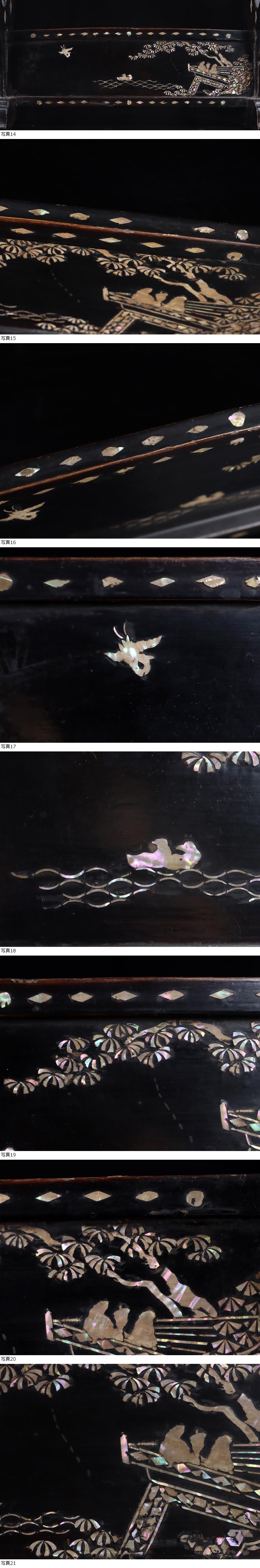魁◆収集家放出品 時代古作品 本物保証 時代武具 螺鈿細工 黒漆青貝 山水人物図 三本掛用 刀掛け 武具 刀装具 收藏
