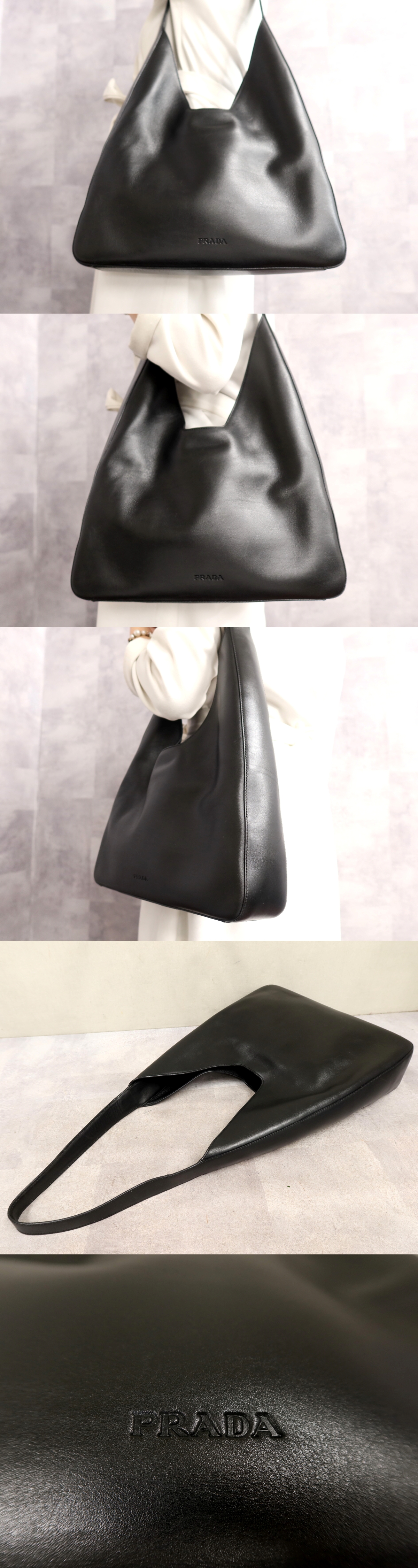 ●超美品●PRADA プラダ●ロゴ型押し●カーフ レザー 本革●ワンショルダー バッグ●黒●シルバー金具●肩掛け●収納 かばん●Js66203 收藏