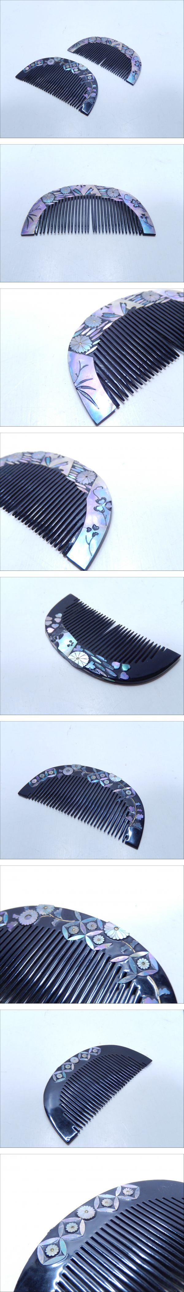 【管KA1154】4000円~ アンティーク 螺鈿細工 本漆 櫛 2個セット 漆塗 くし 古美術 骨董 收藏