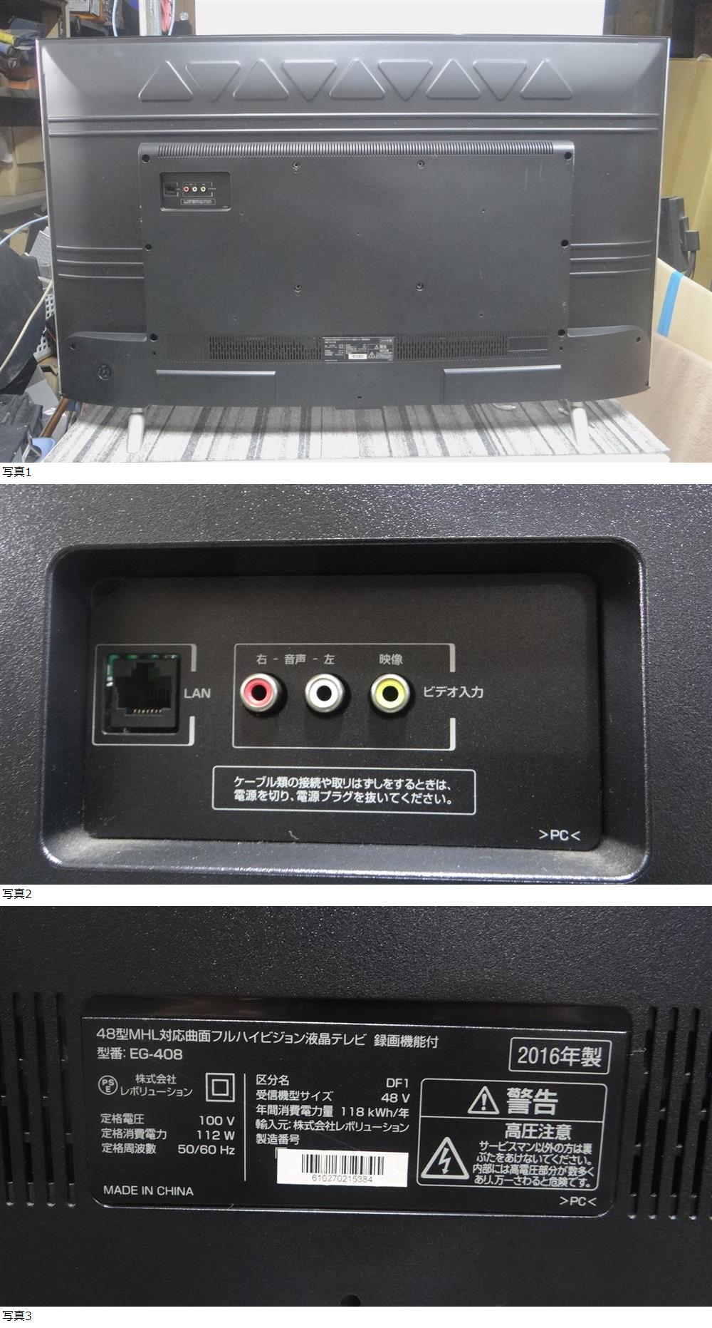 VT5248 48インチ曲面液晶テレビ レボリューション AG-408 2016年製 通電確認済み 現状品 收藏
