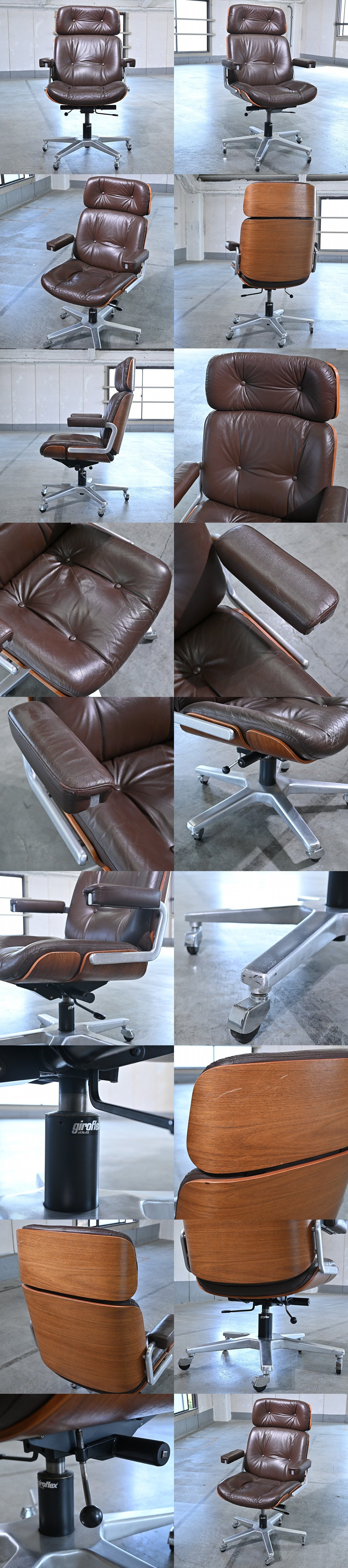 名作 スイス ジロフレックス 40万「82パサール」オフィスチェア V ローズウッド材 プライウッド 本革 ミッドセンチュリー 1人掛け giroflex 收藏
