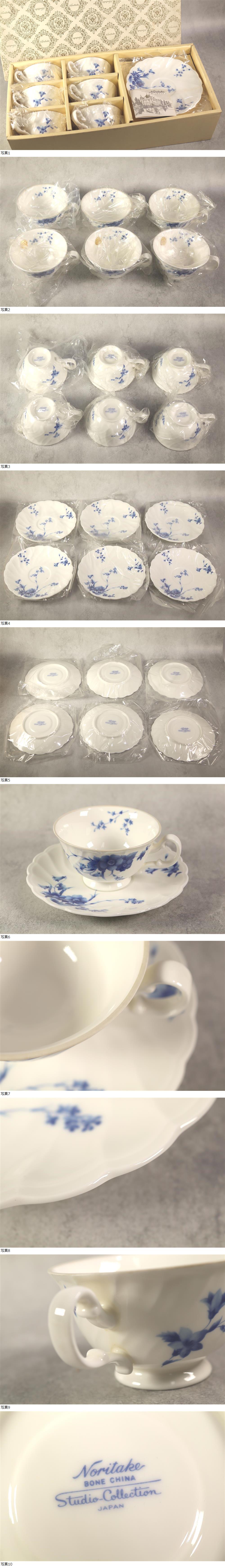 Noritake ノリタケ ボーンチャイナ Studio Collection スタジオコレクション 6客セット カップ&ソーサー 青 花柄 コーヒー 紅茶 碗皿 收藏