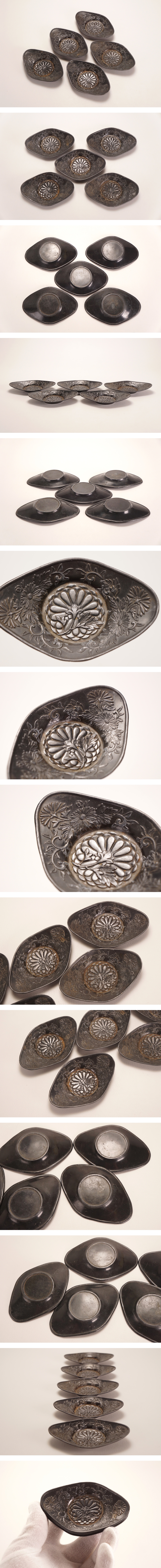 【茶の器特集】NS34◆時代 煎茶道具 錫製 花文 小振り 茶托 小茶托 5客◆うぶ買取品 蔵出し 売り切り 古美術 收藏