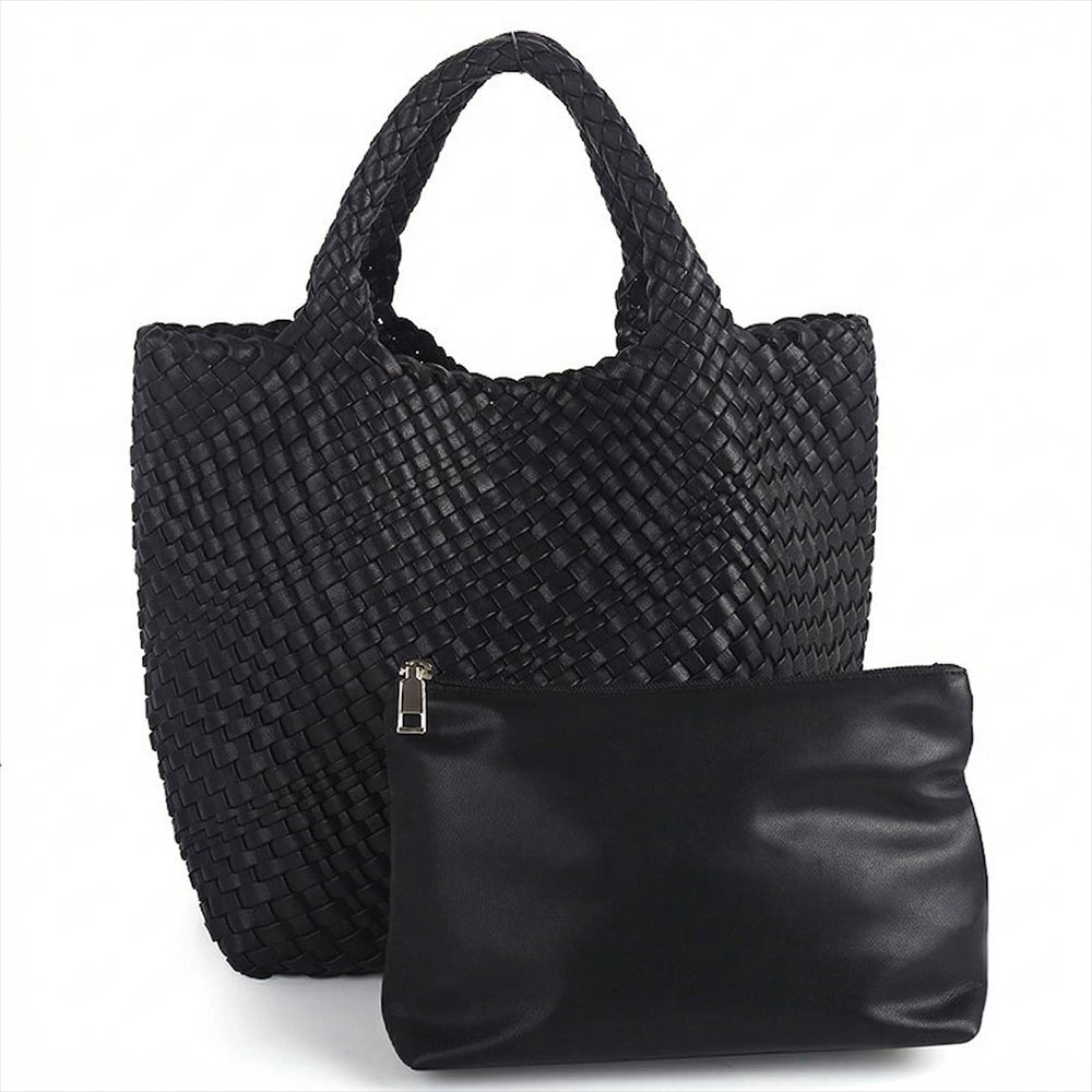 ☆ ブラック ☆ トートバッグ 編み込み メッシュ ポーチ付き おしゃれ トートバッグ 編み込み 大容量 レディース バッグ 大きめ おしゃれ 收藏