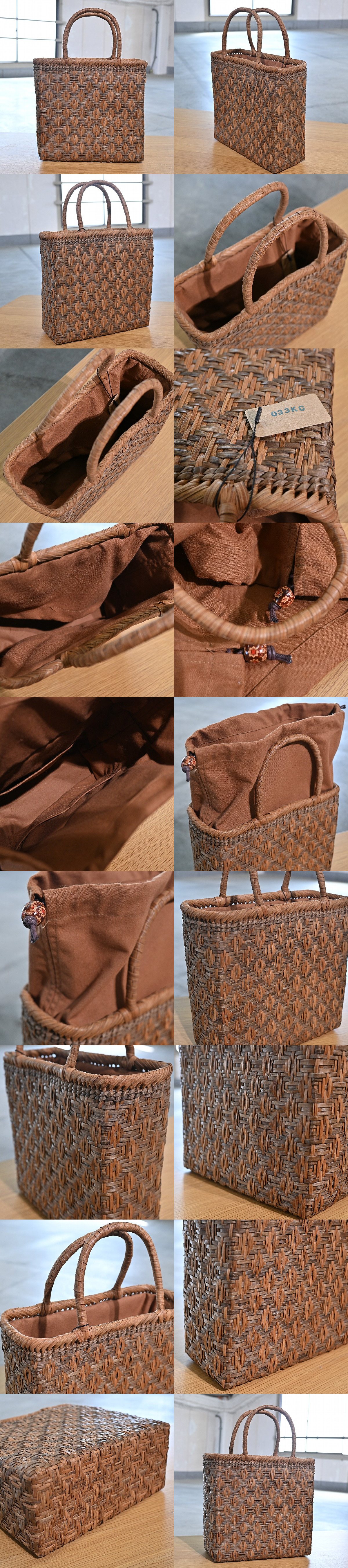 新品未使用 志穂里 山葡萄かごバッグ 14万 K 網代編み 柿渋染め 三越伊勢丹 ハンドメイド 内袋 巾着 レディース 手提げ 女性 籠 やまぶどう 收藏