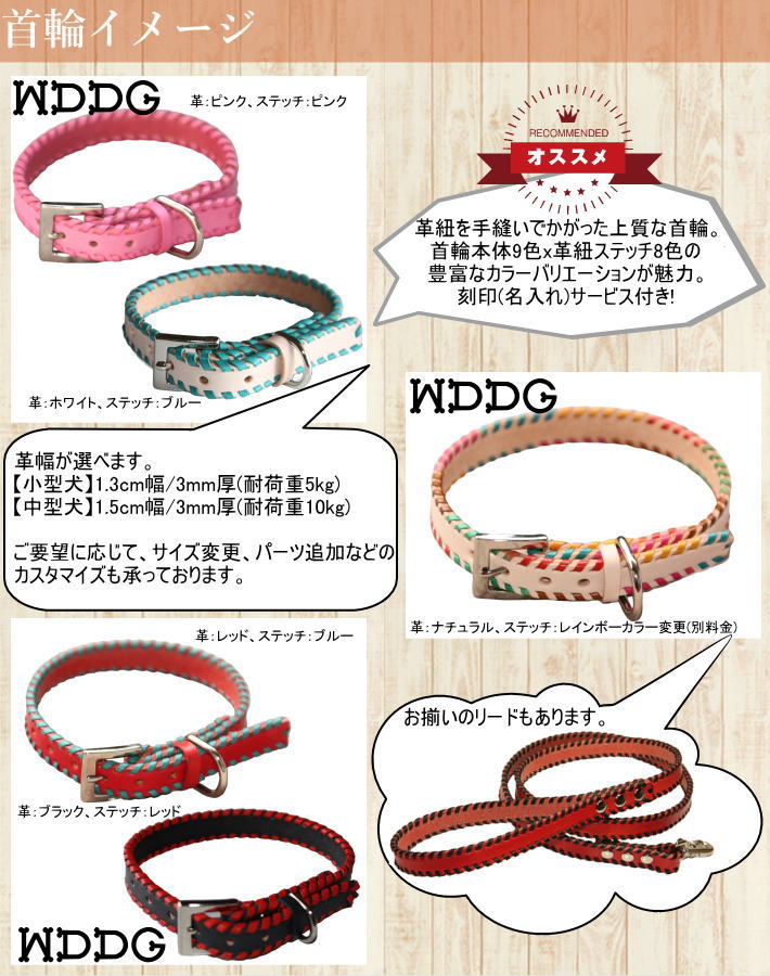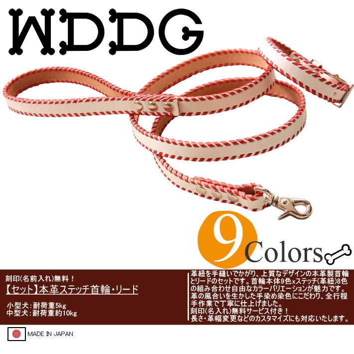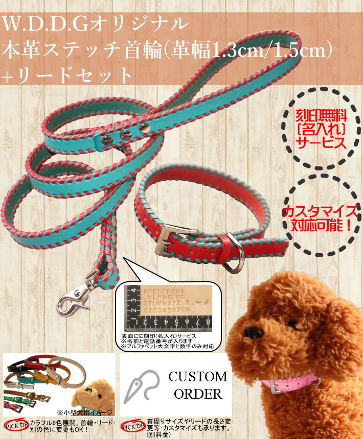犬 革 首輪 リードセット 名前入り 本革 ステッチ リード 首輪セット 小型犬 中型犬 犬首輪 迷子札 ドッグ レザー 日本製/ 收藏