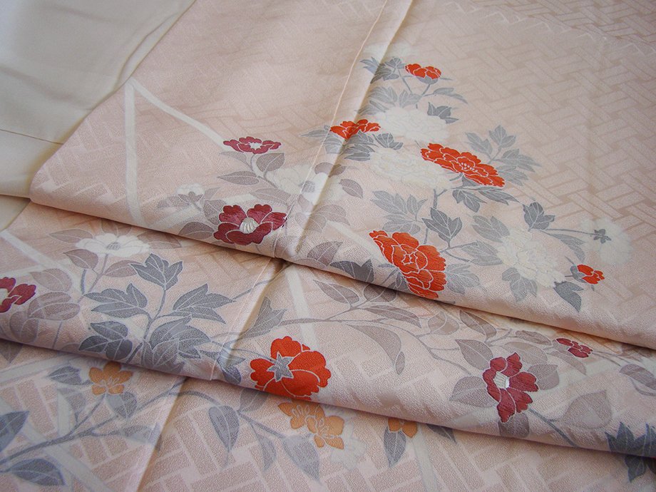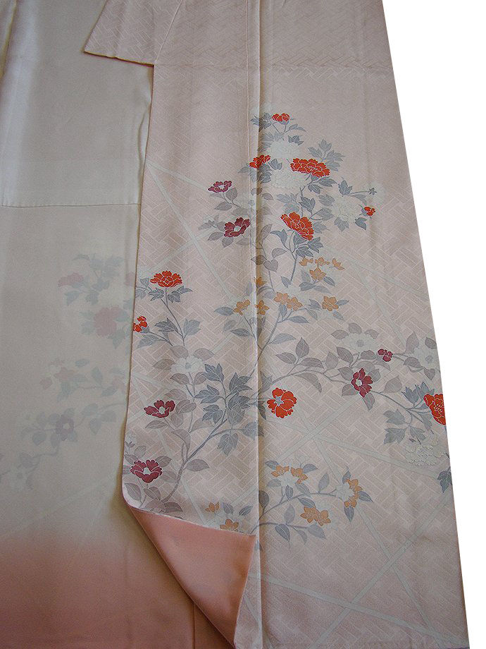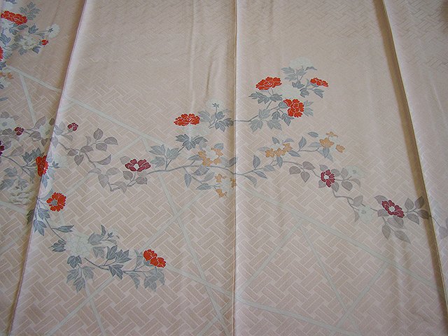 店舗改装セール!美品! 裄65.6cm 紋意匠地 附下げ 訪問着 袷 正絹 仕立上り 150cm~156cm L777 收藏