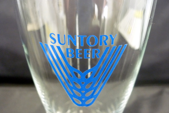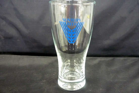 青いエンブレムが印象的な、サントリーのビアタンブラーです。