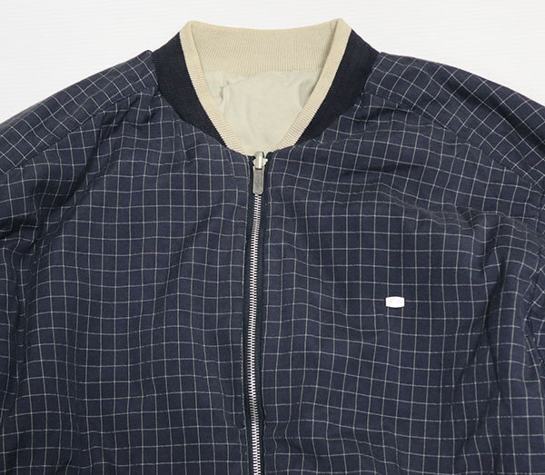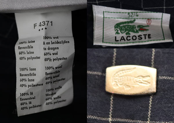 CJ88ラコステLACOSTEアメリカ古着リバーシブルLビッグサイズ/ドリズラージャケット紺系x白系チェックxアイボリー系スウィングトップ 收藏