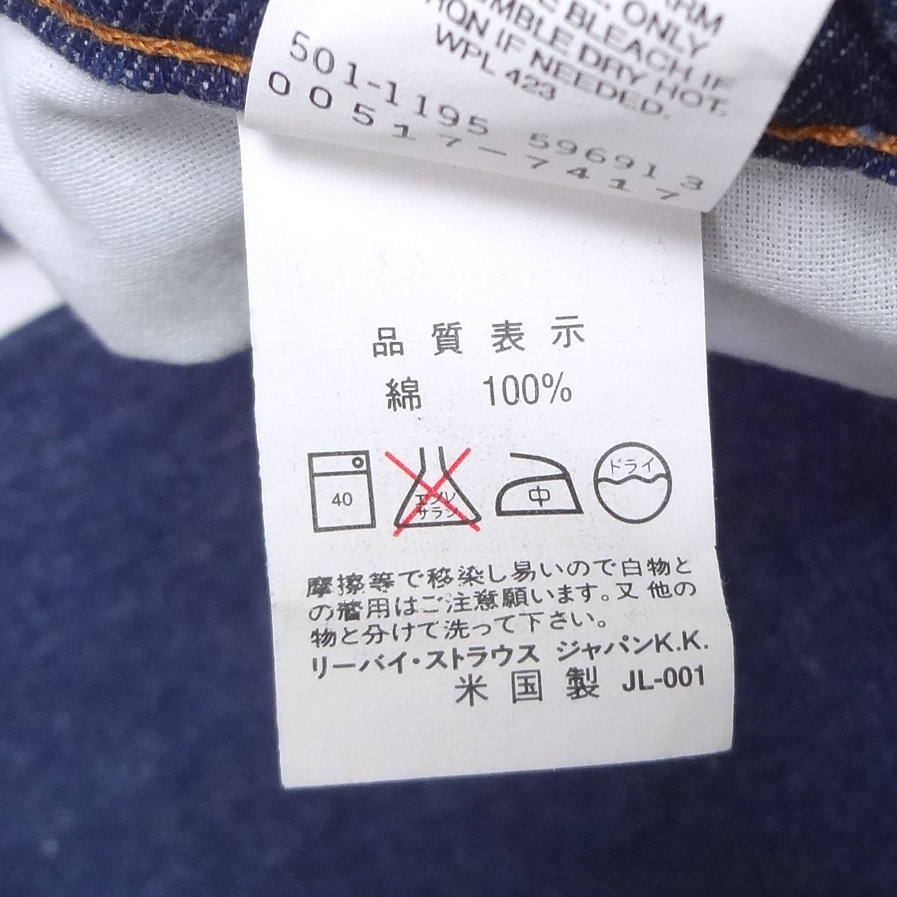 リーバイスの517ブーツカット米国製ジーンズ、実店舗の店頭展示品を1度クリーニングしただけの未使用品、USA製デニム、アメリカ製1995年11月製造ジーパン、インディゴブルー綿100%