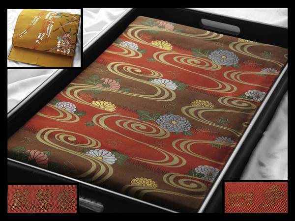 【G1313】厳選逸品 筑紫袋 四季 赤茶色朽葉色 気品豊かに 正絹純金糸両面六通高級美術袋帯 新品同様 ◇検◇簪着物名古屋帯帯締め 收藏