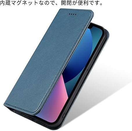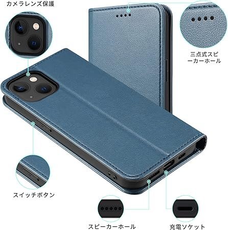 iPhone 13 ケース 手帳型 カード収納 スタンド機能 (ブルー) II0111 收藏