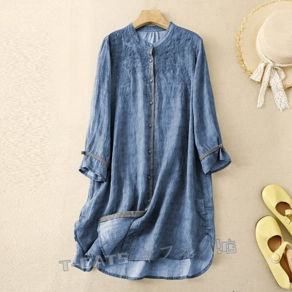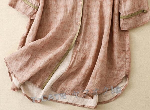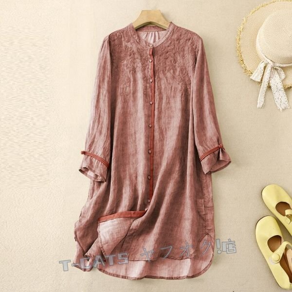 新品☆サイズ選択可 チュニック レディース シャツ 花刺繍 シャツ 半袖 5分袖 大人可愛い 綿麻 ロングシャツ オレンジ 收藏