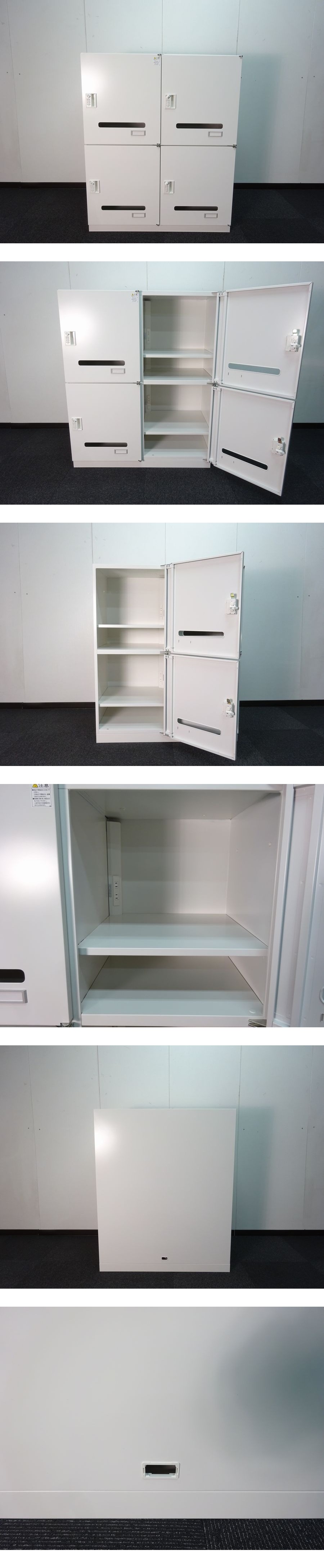・メーカー:イトーキ ・型番:HCN-109HFRE2-W9 ・本体カラー:ホワイト ・サイズ:W900×D450×H1100 単位(mm) ・価格:¥273,460 (ベース込) オフィスファニチャーブランド イトーキのシンラインキャビネット 4人用 モバイル系キャビネットとなります。手荷物はもちろん、コンセント付で収納しながら充電もできるモバイル系の収納に適したロッカーです。また、メールボックス付で収納している相手宛のFAXや書類を収納することも可能です。 ■仕様 ・本体:スチール塗装仕上 ■状態 ・こちらの商品は2024年製未使用品となります。運搬時の若干のスレはございますが、目立つキズなど無く綺麗な状態です。電子機器の保管、収納に最適です。この機会にいかがでしょうか! (※未使用とは…商品を開封し、設置等しましたが一度も使用せず保管していた商品となります。) | ||||