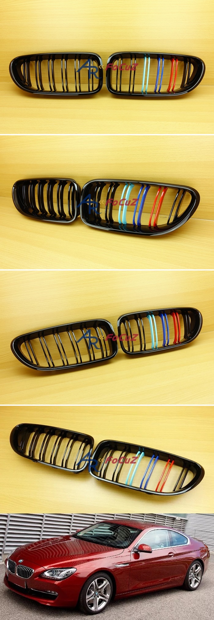 | BMW F06 F12 F13専用 ABS製 フロントグリル セット 光沢黒+Mの3色 ダブルバー |
