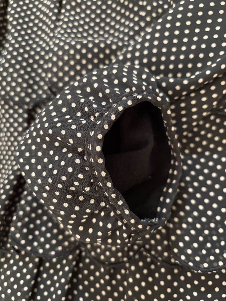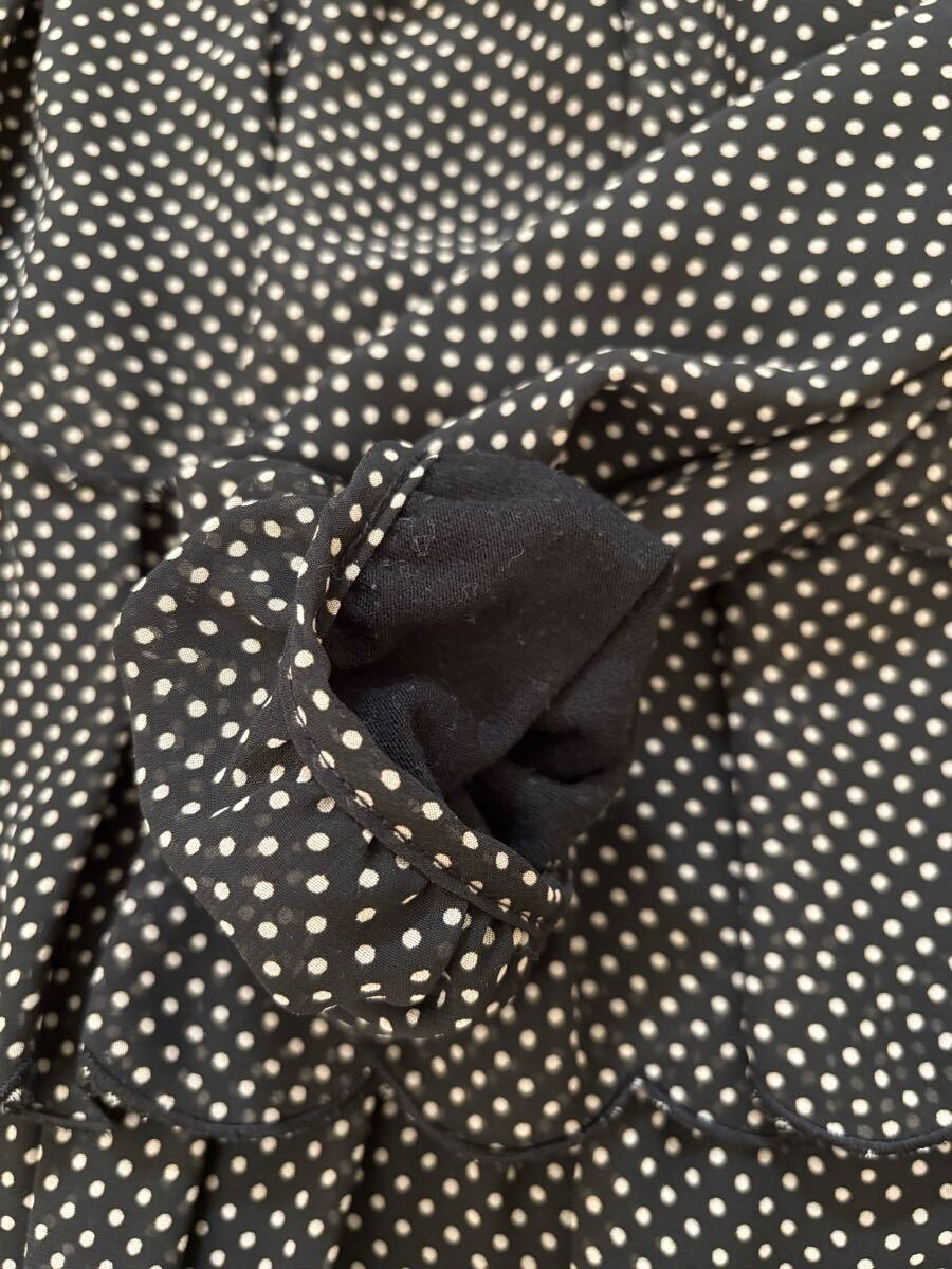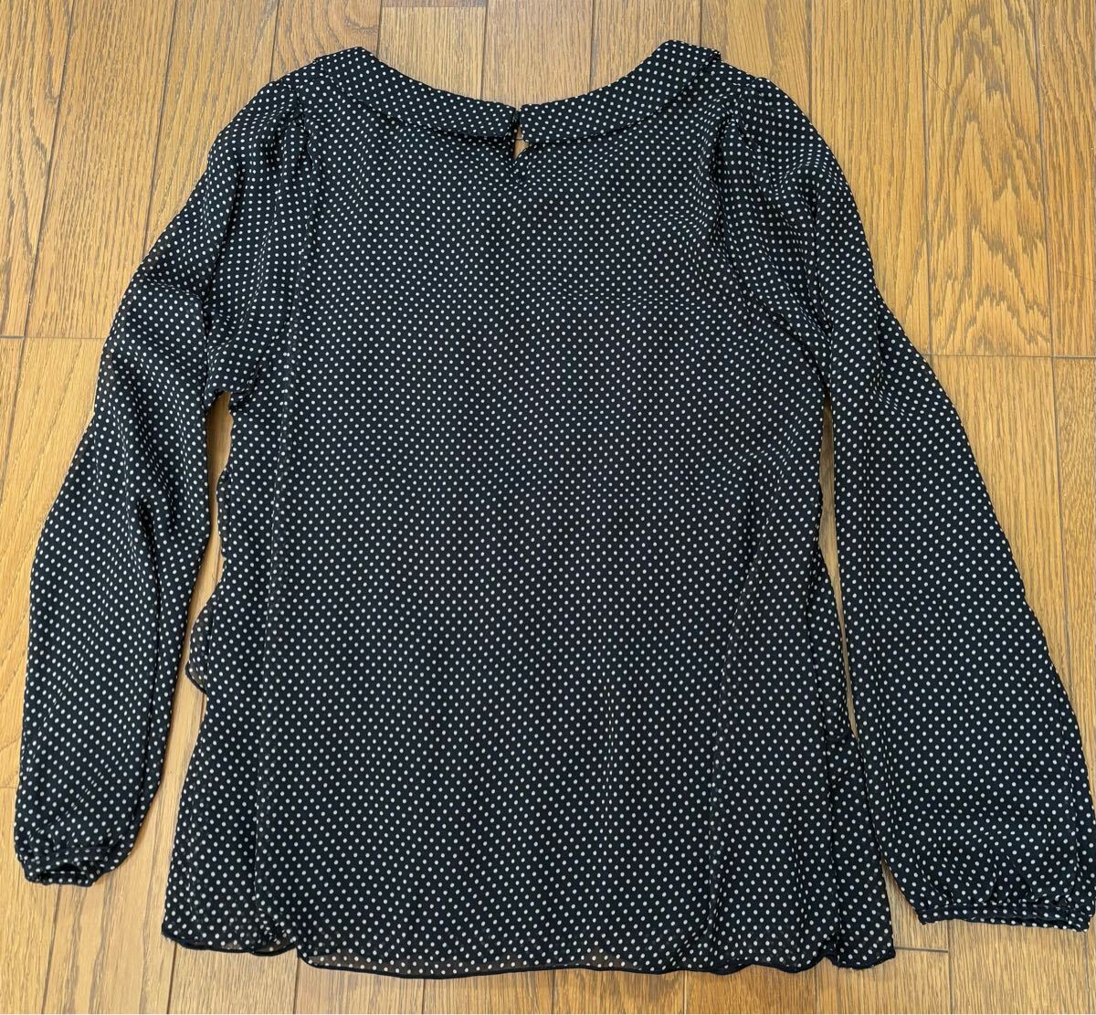 水玉模様ティアード ブラウス、長袖丸襟トップス、Mサイズ、黒色、裏地付き(身頃も袖も)、used、クリーニング店仕上げ済み 收藏
