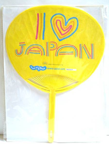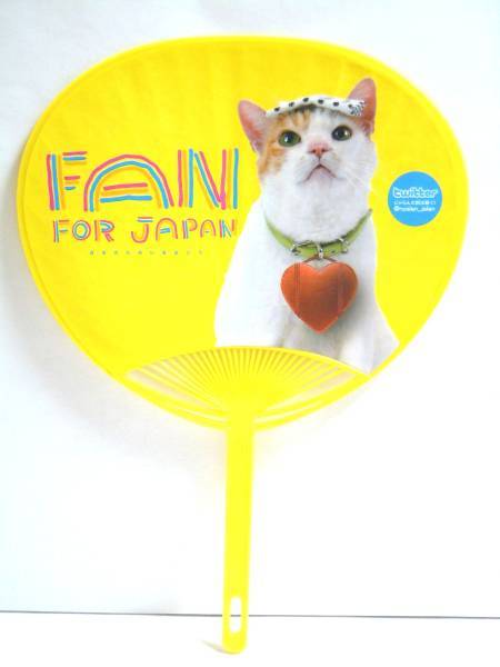 【新品!!】 にゃらん うちわ 2011年 じゃらん 付録 ねこ ネコ 猫 黄色 イエロー 日本のためにみんなであおぐ 団扇 I LOVE JAPAN 收藏
