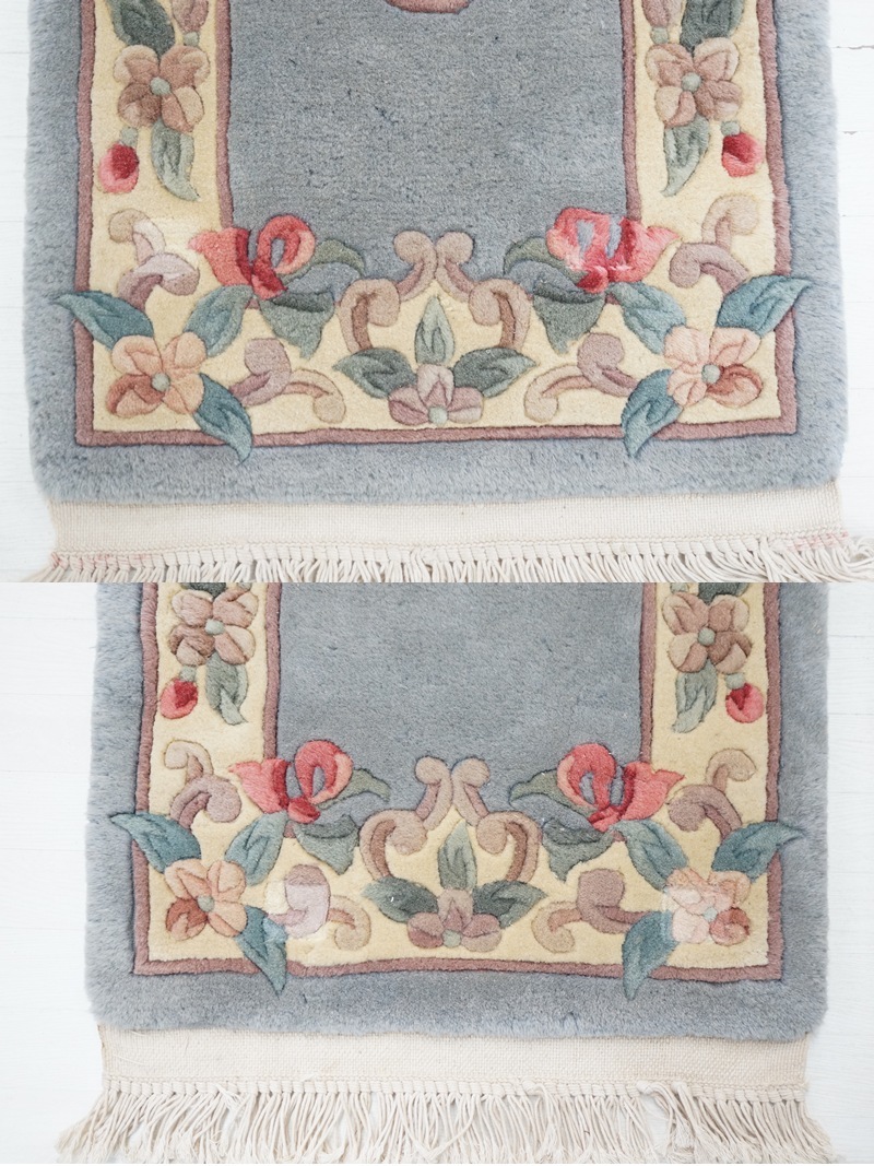 | 東ハ:【段通】中国段通 花模様 玄関マット 全幅約94×奥行約46.2㎝ 厚さ約2cm エントランス敷物 ラグマット 玄関 ★送料無料★ |