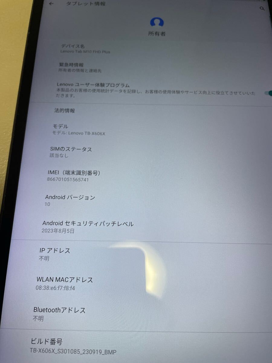 Lenovo Tab TB-X606X SIMフリ 現状品 Y1283 收藏