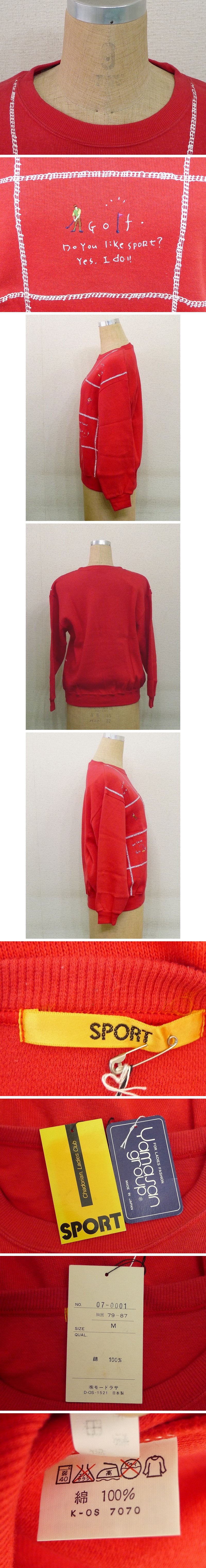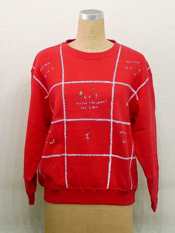 60SR11★昭和レトロポップな赤いニット/トレーナー Mサイズ 綿100% 赤系 ゴルフ 丸襟 80年代 ポップ カジュアルスタイル 收藏