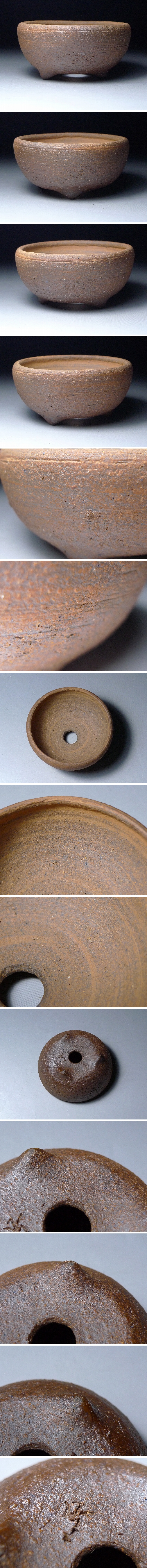 60HT51★盆栽鉢・今岡町直造・梨皮泥三足丸鉢・豆盆栽鉢 盆栽小鉢 豆鉢 和鉢 豆植木鉢 小鉢 園芸鉢 ミニ盆栽鉢 小品盆栽鉢 收藏