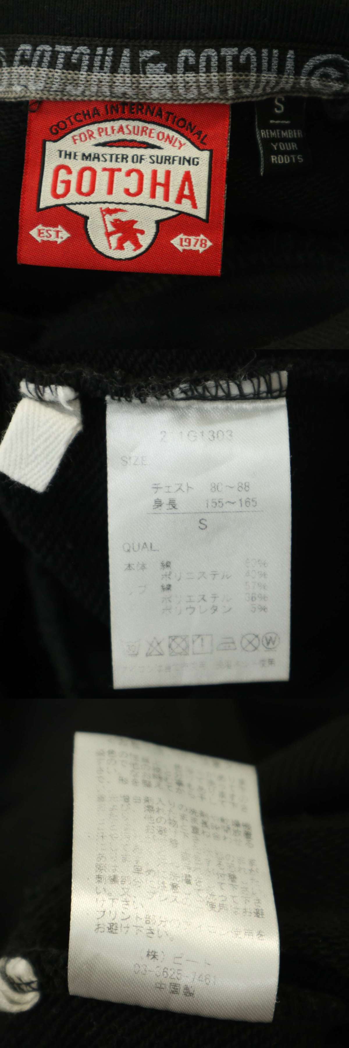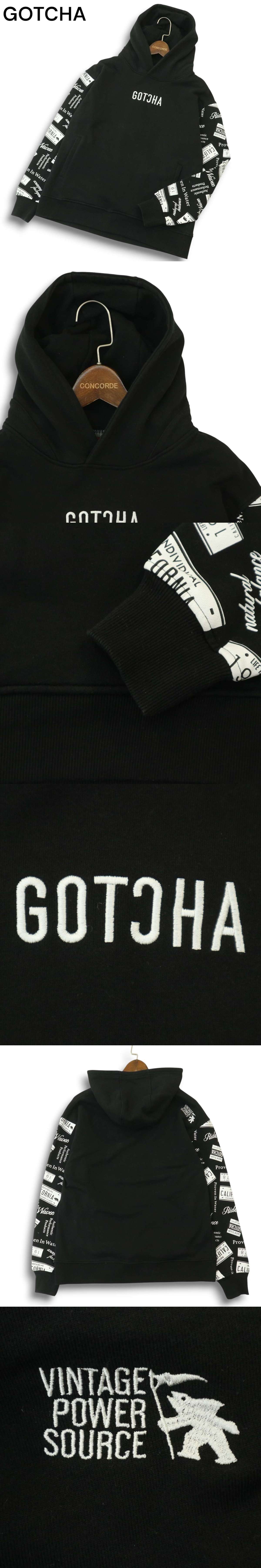 GOTCHA ガッチャ 通年★ ロゴ刺繍 袖プリント パーカー プルオーバー スウェット Sz.S メンズ 黒 サーフ 收藏