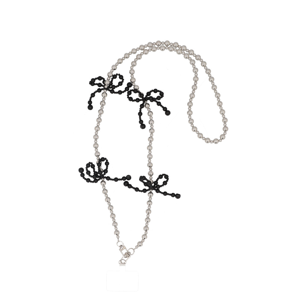 ☆ シルバーxブラック ☆ ビーズリボンストラップ スマホストラップ ショルダー スマホ ストラップ ビーズ スマホショルダーストラップ 收藏
