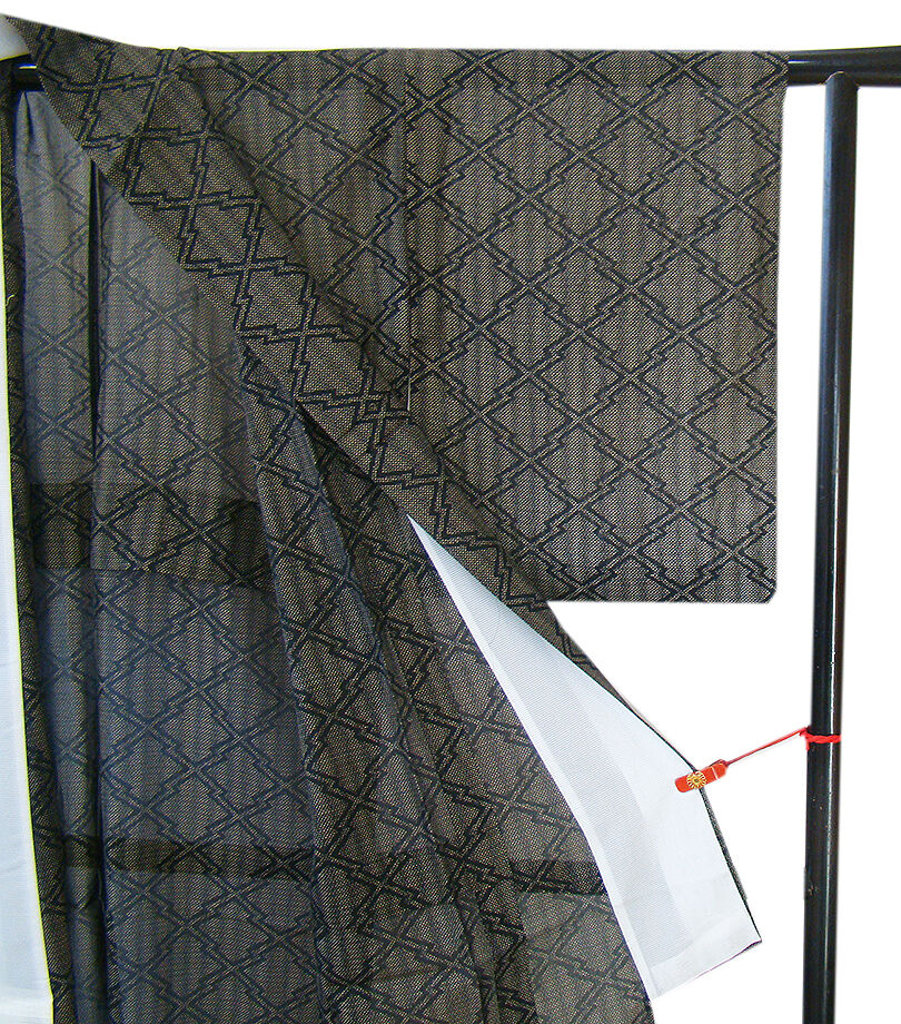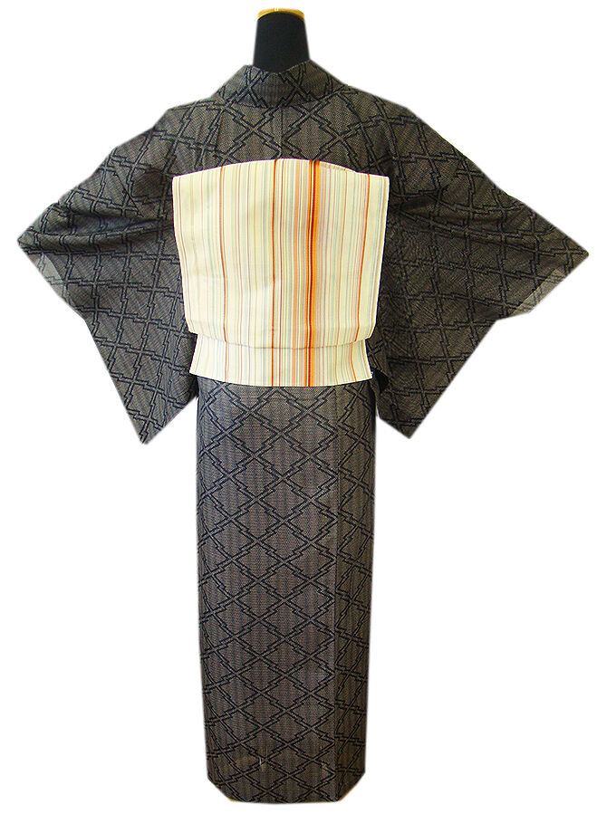 ★超大特価★夏物!洗える高級ポリエステル! 粋な黒地の「紗紬」&なごや帯&正絹の帯〆3点セット B310★ | |