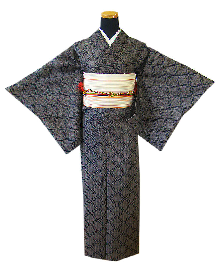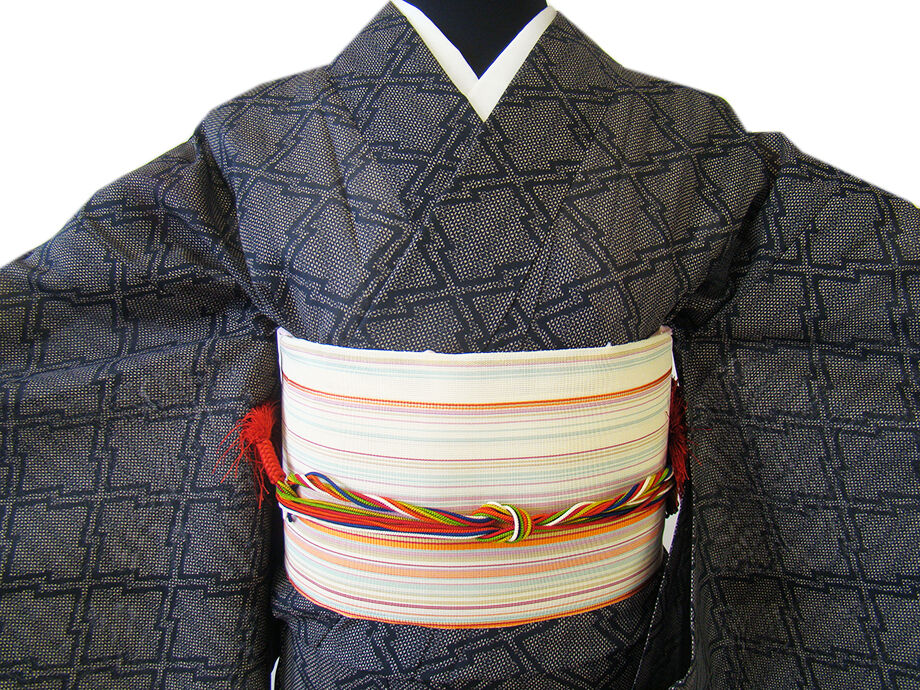 | 商品説明 | こちらのお品は夏物でございますので、7月~8月にお召頂ければと思います。 「紗」と言えば、絽と双璧を成す夏のお着物の生地で、その最大の魅力は絶妙の透かし加減です。 清涼感溢れる地の風を通すしなやかさは夏に着物を着るという贅沢を 快適に愉しませてくれる事でしょう。 着物には、大きく分けて「袷(あわせ)の着物」と「単衣(ひとえ)の着物」と「夏着物」があります。 反物(表地)を着物に仕立てるときに、裏地類をつけるものを袷の着物、 つけないものを単衣の着物と呼び、胴裏や八掛といった裏地がつかない一枚ものの着物です。 また裏地がないため、座る時などにヒップのラインが目立たないよう、 居敷当て(いしきあて)の生地をつけることもあります。 居敷当ては付いておりません。 くしなやかな手触りの、滑らかなさらっとした肌触りは絹と間違ってしまいそうな 洗える「紗紬」の高級ポリエステルはとても涼やかな風合いを醸しております。 黒色地にベージュ色の松皮菱柄が粋な着物姿を演出しております。 帯は「ポリエステル」の八寸かがりなごや帯(全通柄)で扱い易く〆易く、 薄クリーム色地に橙、赤、水色等の縞柄がお顔映りも華やかな帯姿を奏でております。 帯〆は「正絹」、橙、赤、からし、青、抹茶色等の組紐となっております。 |
