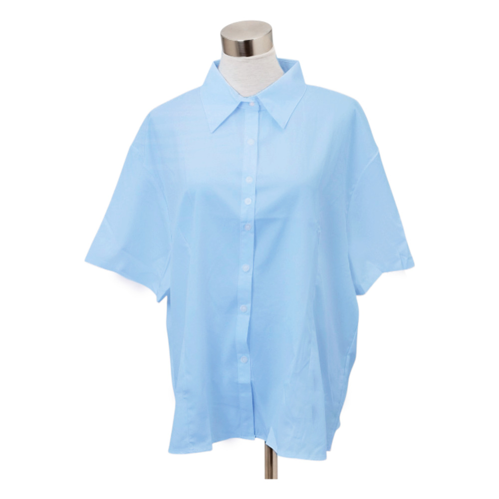 ☆ ブルー ☆ 5XLサイズ ☆ シャツ 大きいサイズ ストレッチ シャツ ブラウス レディース 半袖シャツ ゆったり 大きいサイズ 收藏