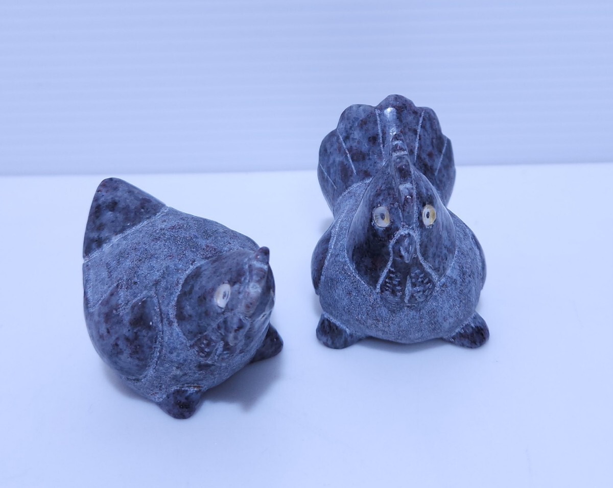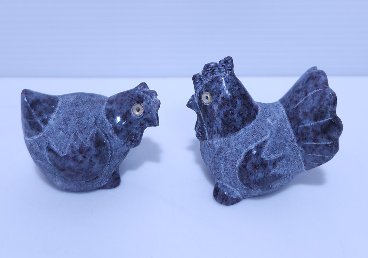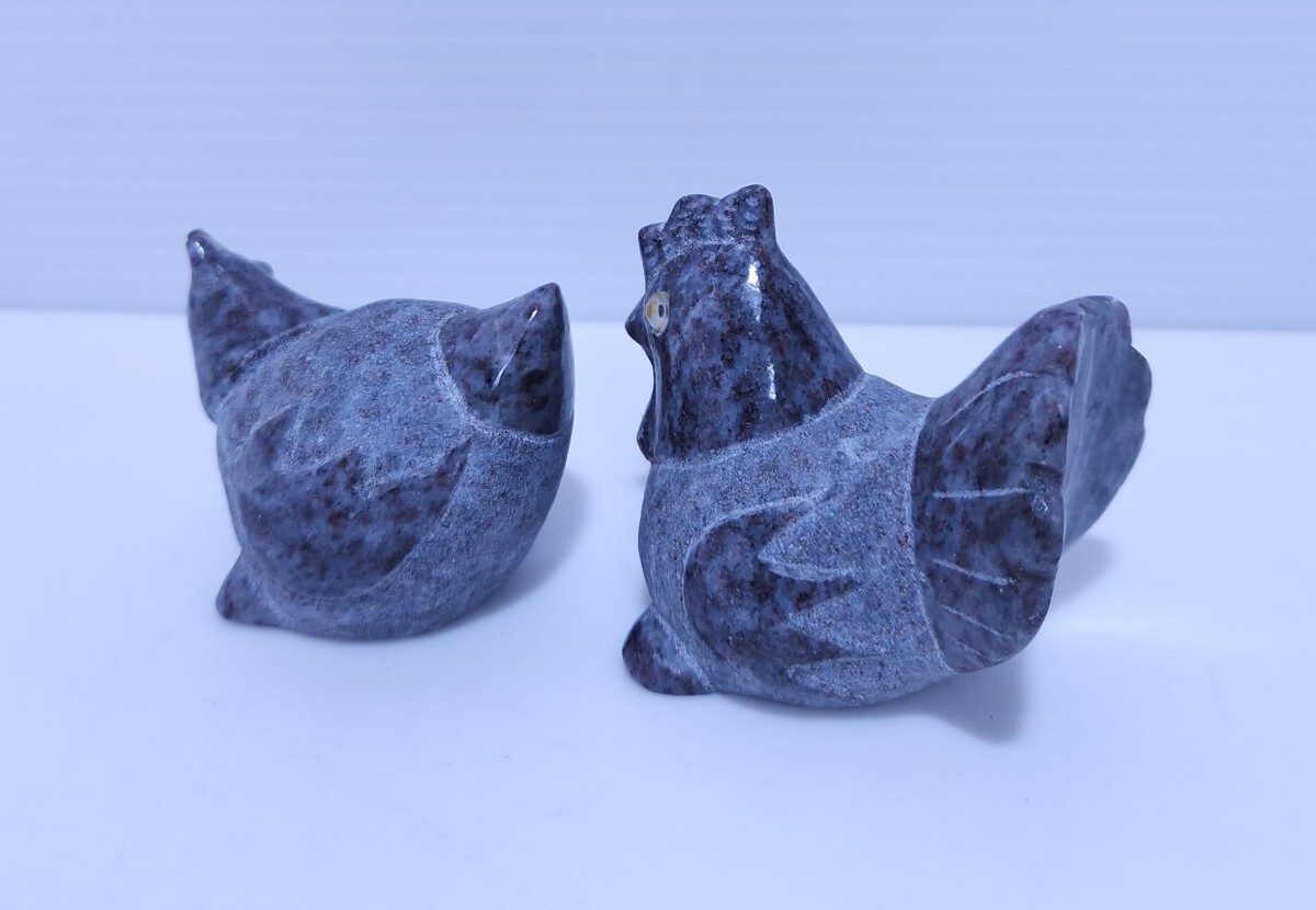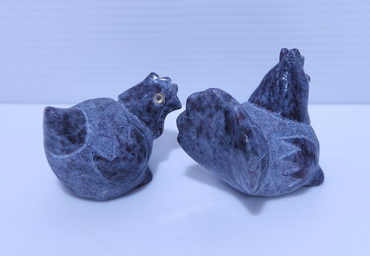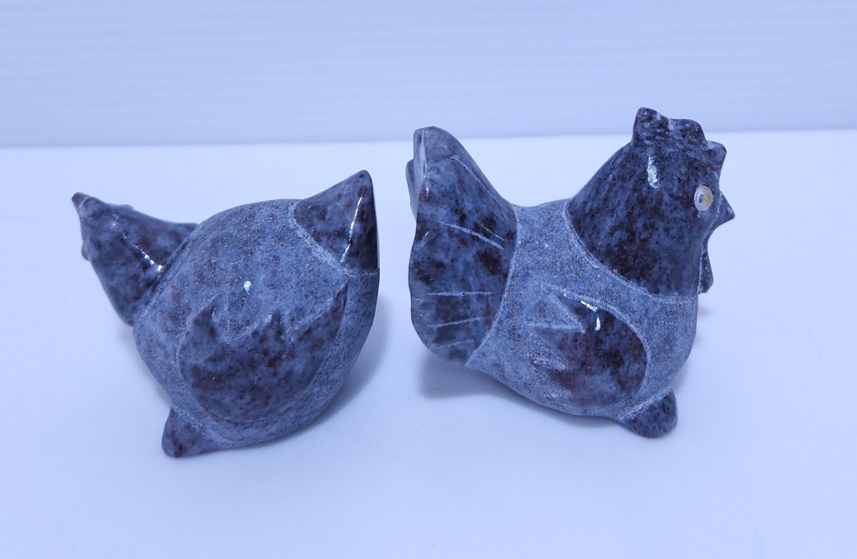 御影石 鶏 ニワトリ 縁起物 置物 庭石 オブジェ インテリア 干支 希少品 2台 (AB-17) 收藏