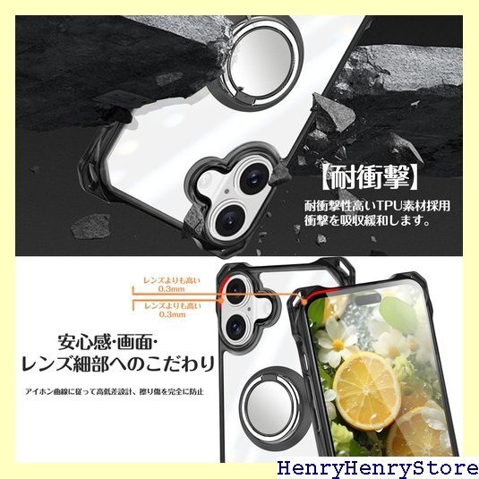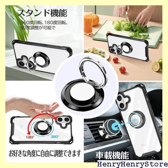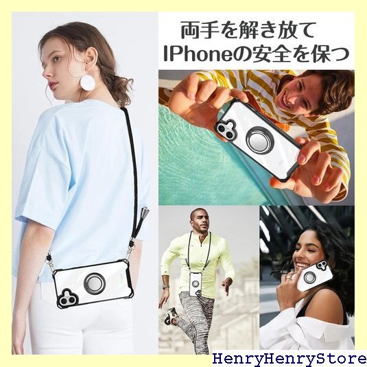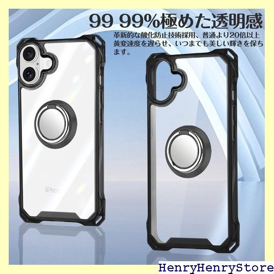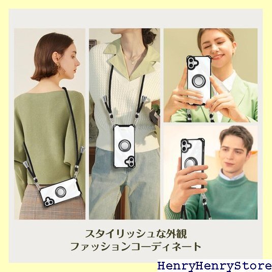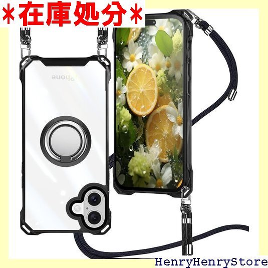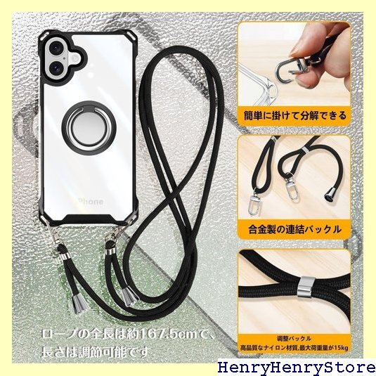 iPhone 16 用 ケース クリア リング付き シ 縄掛け 縦/横 2WAY 調節可能な 落下防止 ブラック 1991 收藏
