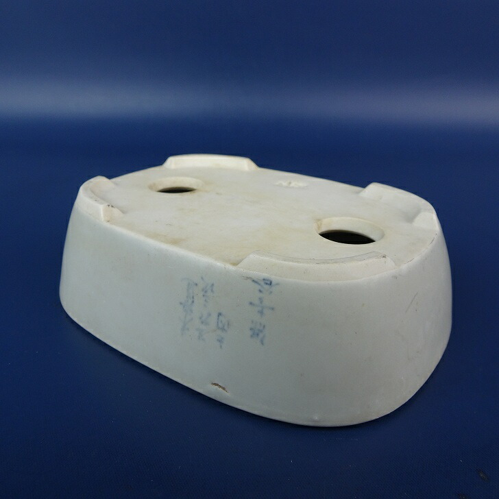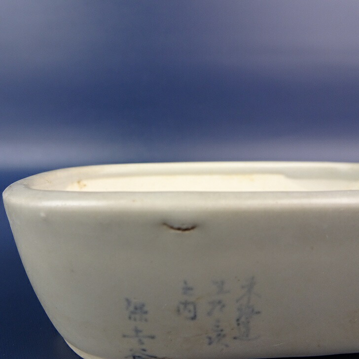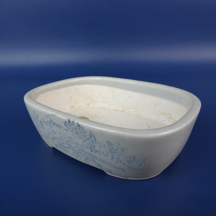 【中古】盆栽鉢 文山 小型 長辺 約11.5cm 長方鉢 撫角 染付 東海道 五拾三次ノ内 風景 現品 中古鉢 收藏