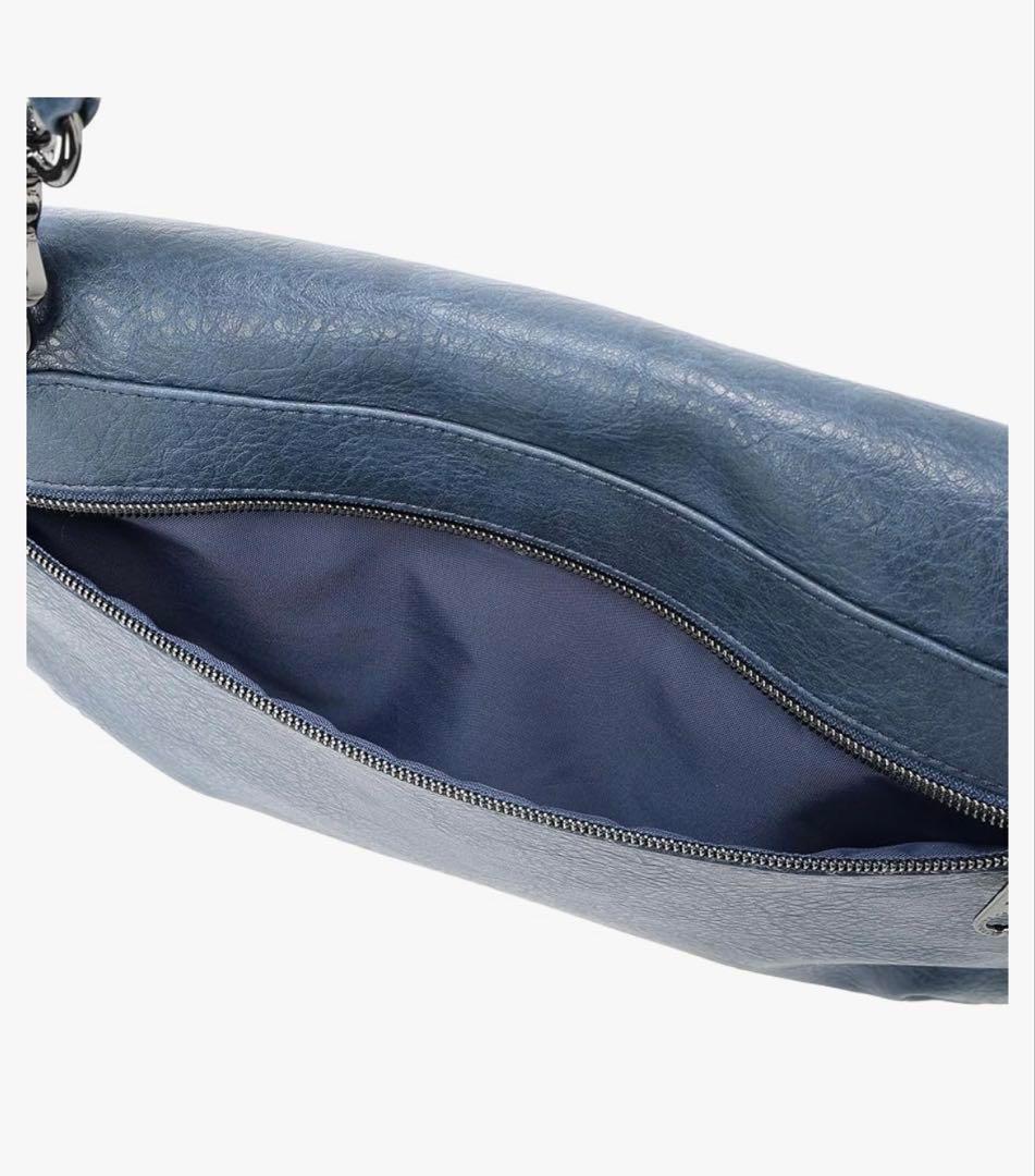 ショルダーバッグ ネイビー パスケース付き 電車移動 通勤 通学 合皮撥水 收藏