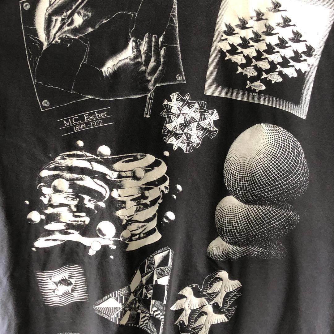 XZ480 90s Tシャツ マルチプリント エッシャー アート ビンテージ 古着 シングルスチック Lサイズ ANDAZIAタグ 黒T 收藏