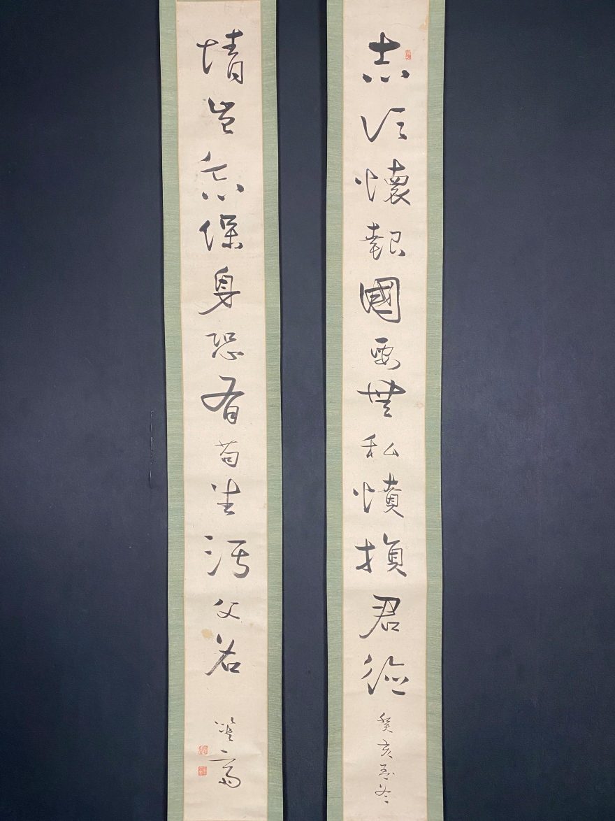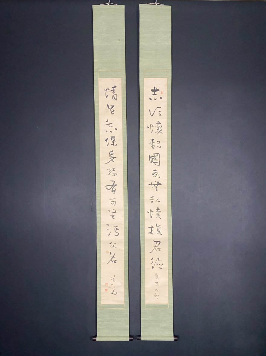 【模写】【一灯】ia9966〈岡村簣斎〉双幅 書 長門萩藩士 酌中 江戸時代後期-明治時代 收藏