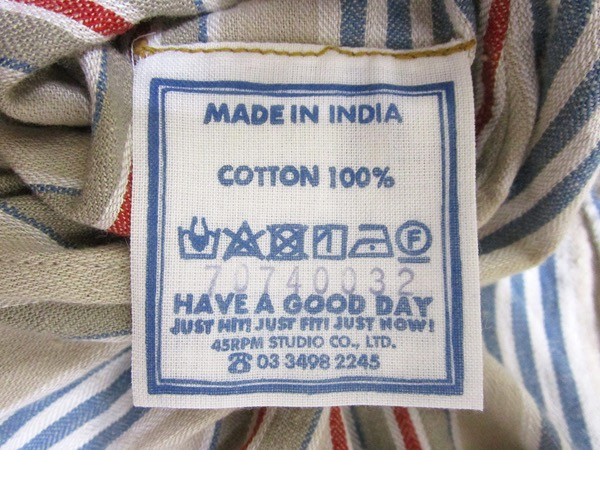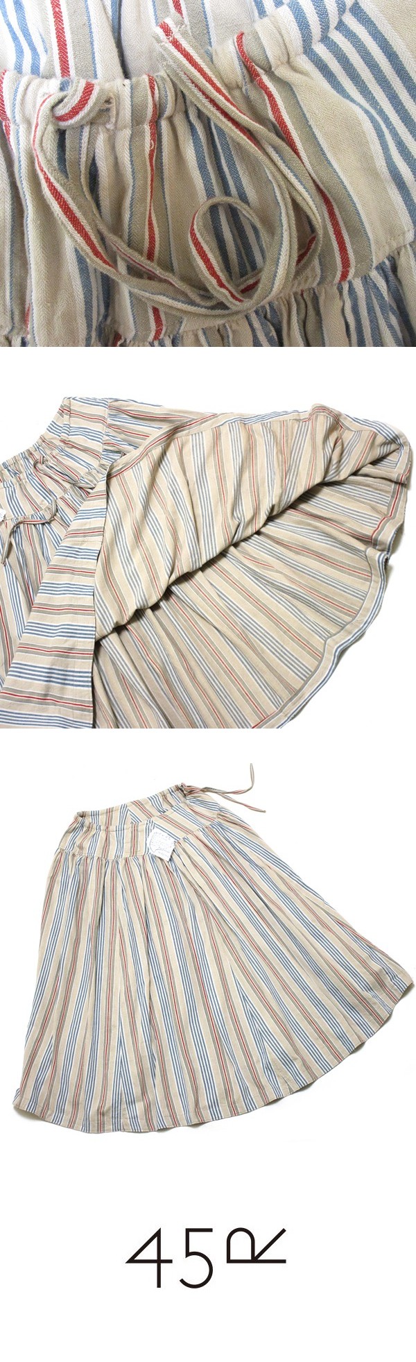 新品♪ 定価4.4万 45R フォーティーファイブアール インドミニへリンボンストライプの ギャザー イージー スカート ! ロング 45rpm 藍 收藏