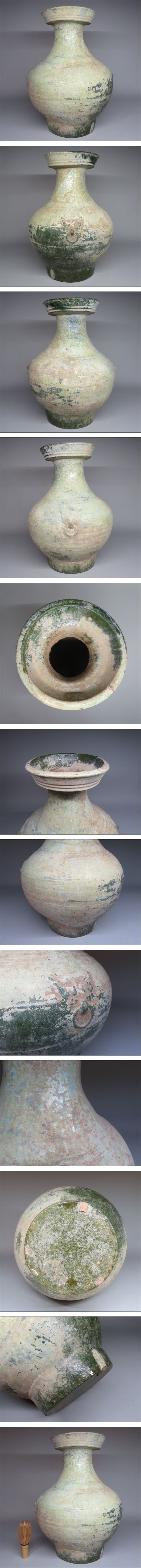 「都内コレクター所蔵品」漢時代 緑釉銀化獣耳大壷 中国美術 東漢時代 ◆加彩 花瓶 発掘 彩文土器 彩陶壺 | ||