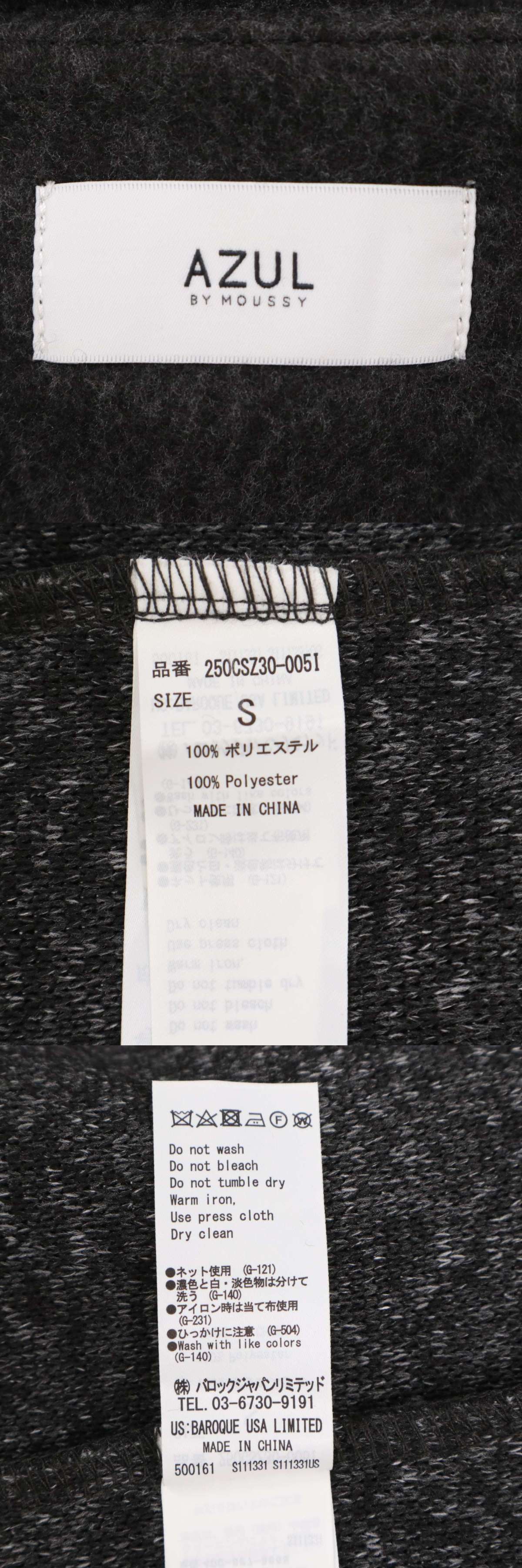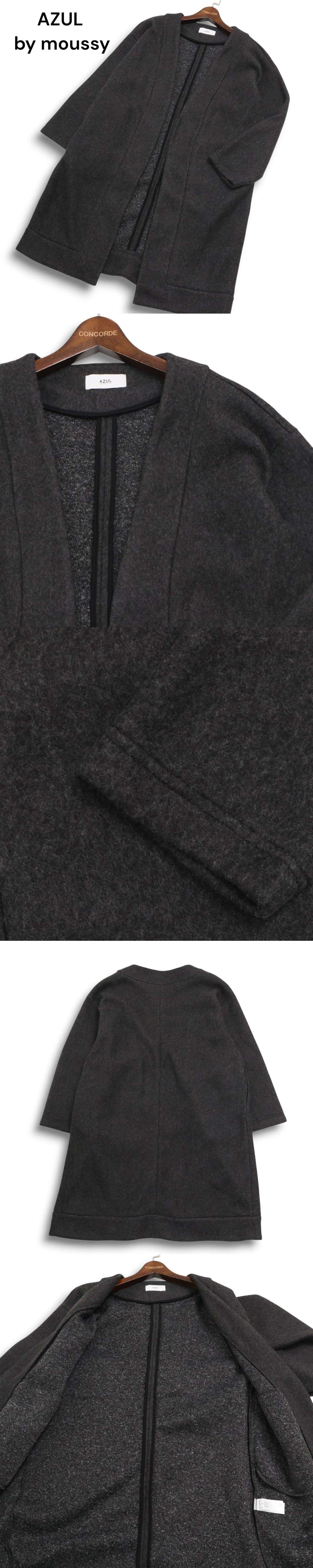 【美品】 AZUL by moussy アズール マウジー 秋冬★ ノーカラー ガウン ロング カーディガン 羽織り Sz.S メンズ グレー 收藏