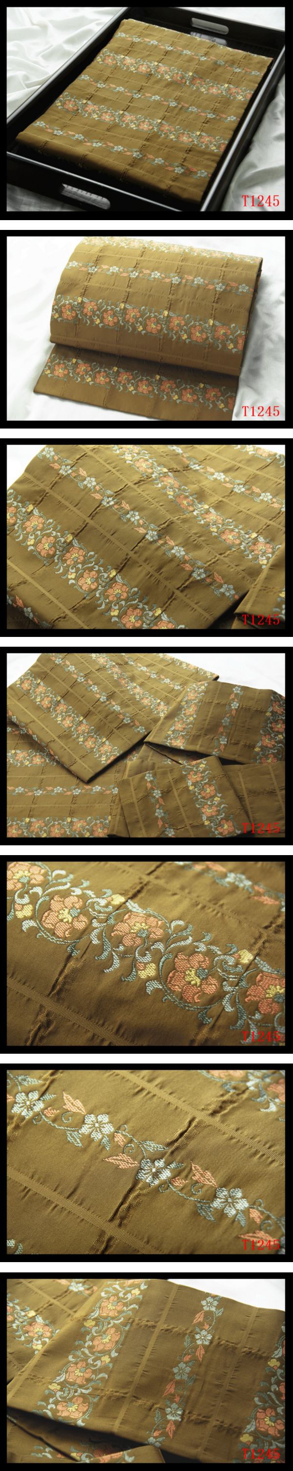 蔵【T1245】厳選逸品 唐草花段紋 梅幸茶色地 気品豊かに 正絹高級美術名古屋帯 ◇検簪着物袋帯和装小物帯締め 收藏