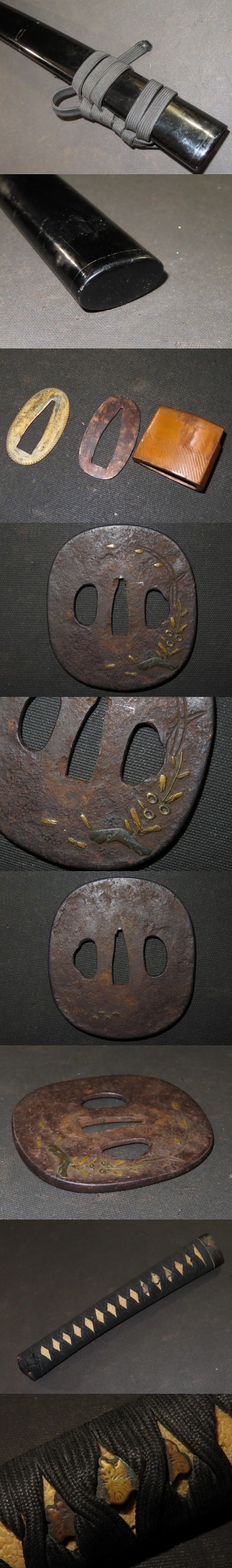 刀 無銘 拵 江戸 93×刀身60.5×反1.4×元幅3×元重0.7x先重0.4cm 1㎏ 收藏