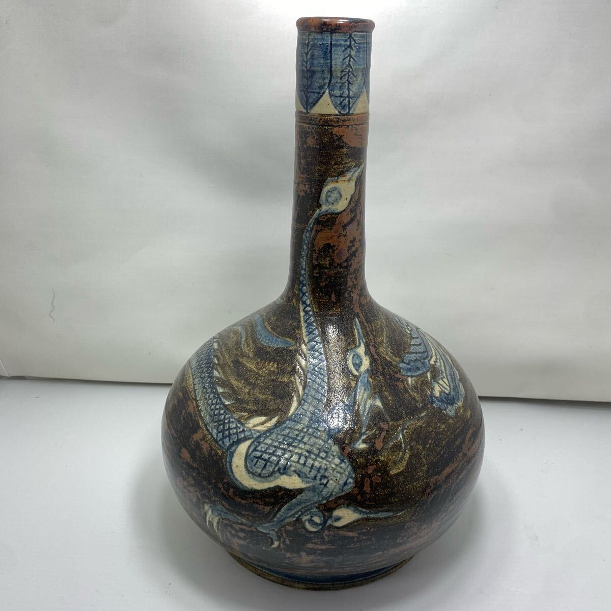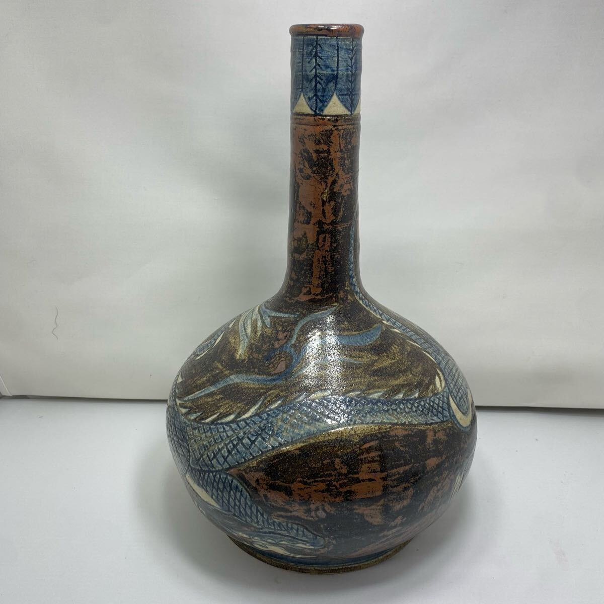 銘あり 花瓶 花入 在銘 一輪挿し 重量3.88kg (銘読み方不明 唐物 李朝 花器 徳利 龍 やちむん 沖縄 骨董品 古玩 中国 中國 金城次郎 YMB 收藏