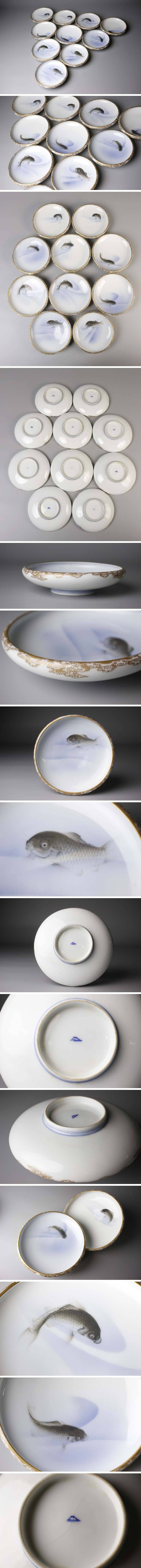 【LIG】オールド深川製磁 色絵 鯉図皿 十客 輸出用 有田焼 古美術品 箱付 [.WI]25.9 收藏