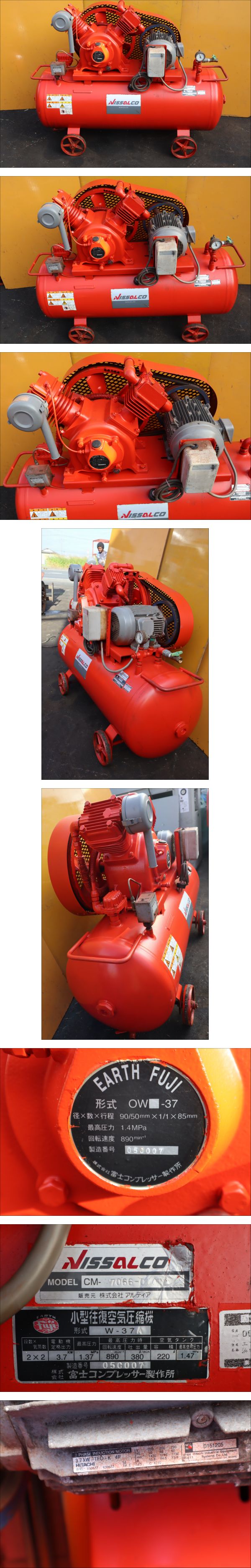 EARTH FUJI. エアーコンプレッサーNISSALCO OW-37 3.7kW(5馬力)三相200V タンク220L 整備点検塗装済 動作確認済 即決価格 | ||