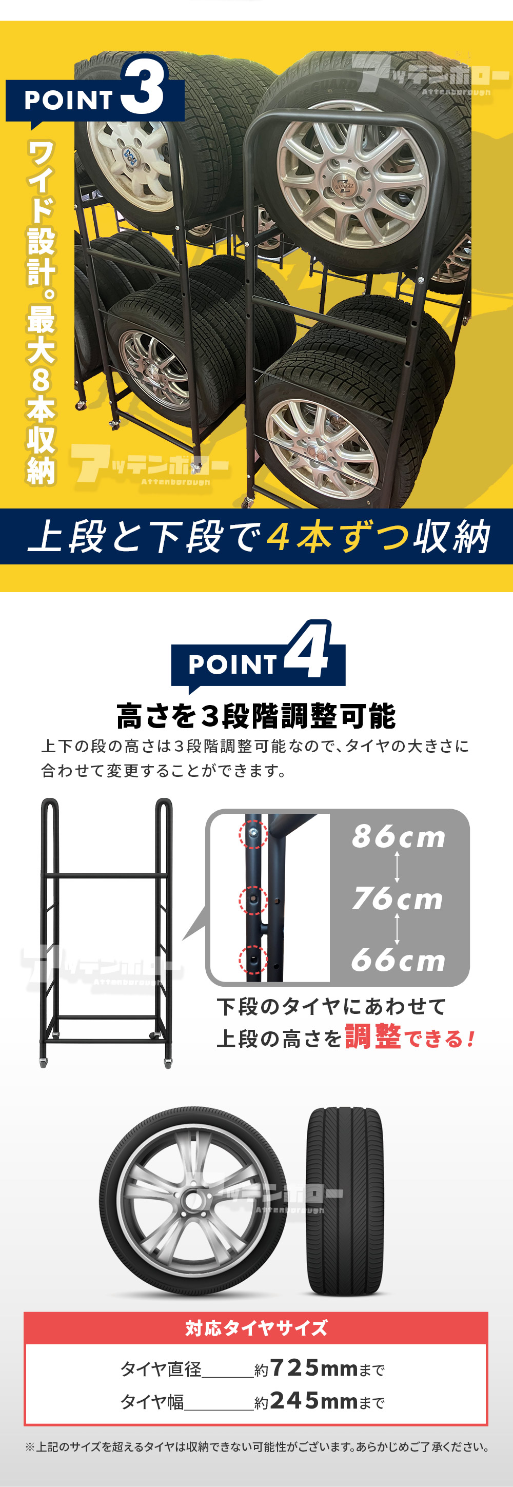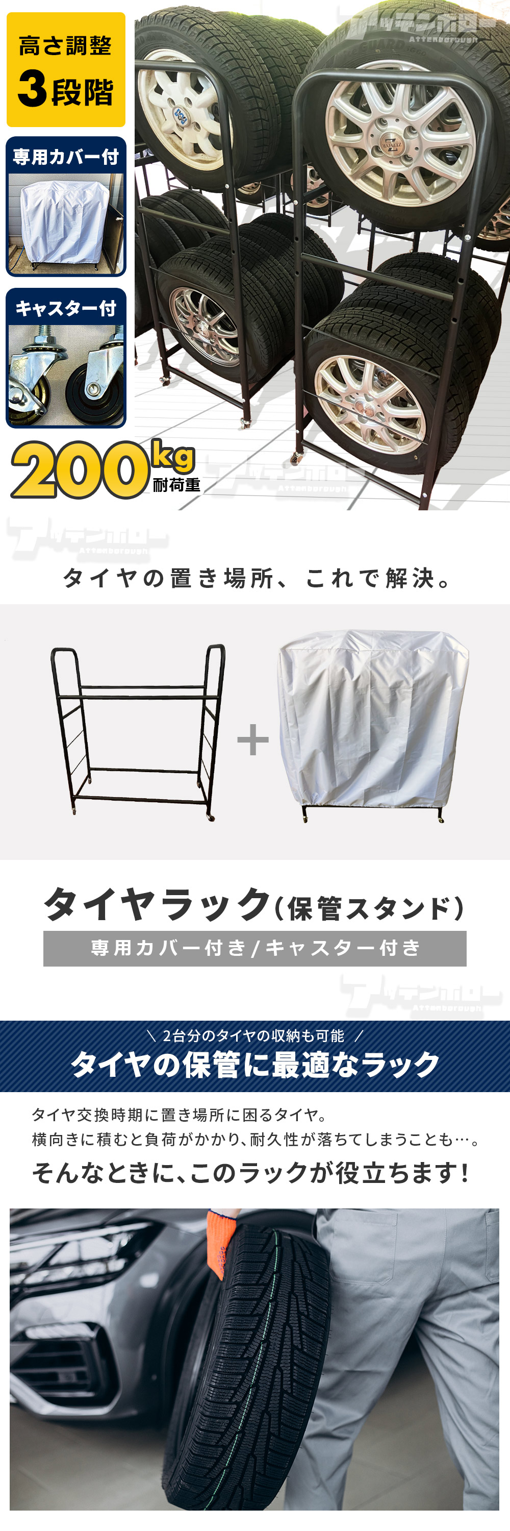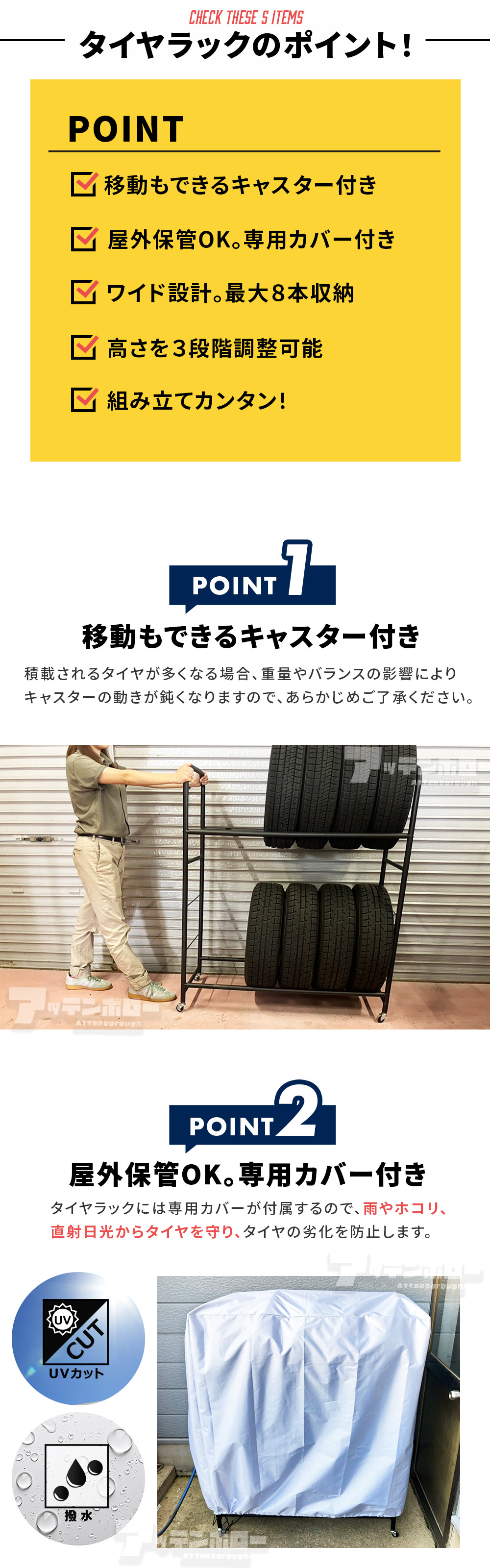 【訳あり】タイヤラック 8本収納 耐荷重200kg 保管 3段階調整 タイヤ収納 ガレージ収納 キャスター付 カバー付 冬タイヤ 夏タイヤ 收藏