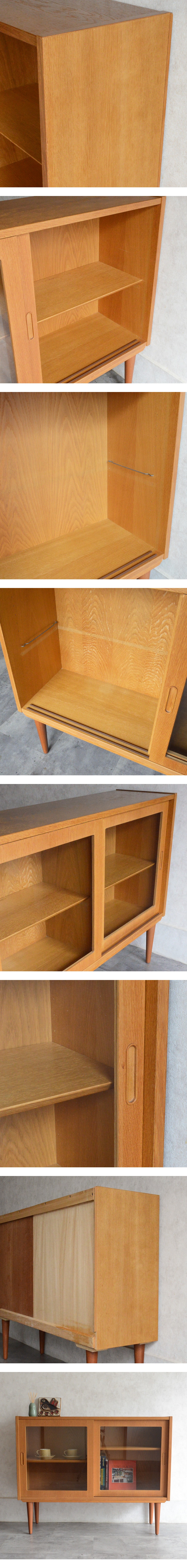 デンマーク 北欧ヴィンテージ Poul Hundbab オーク ガラスキャビネット 北欧家具 ディスプレイキャビネット 飾り棚 ブックケース 本棚 收藏