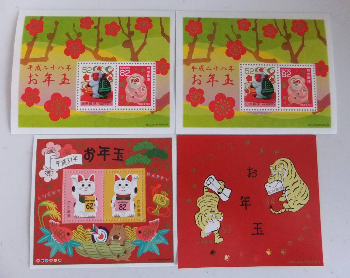 お年玉 切手シート 平成28年 52円 82円 2シート 平成31年 62円 82円 2022年 63円 84円(シール)計4シート 記念切手 日本郵便 コレクション 收藏